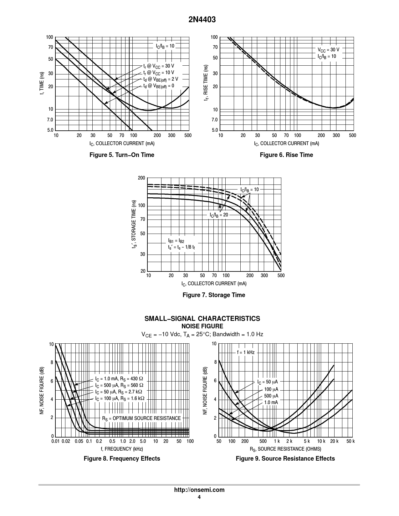 2N4403. Figure 5. Turn−On Time. Figure 6. Rise Time. Figure 7. Storage Time. SMALL−SIGNAL CHARACTERISTICS. NOISE FIGURE
