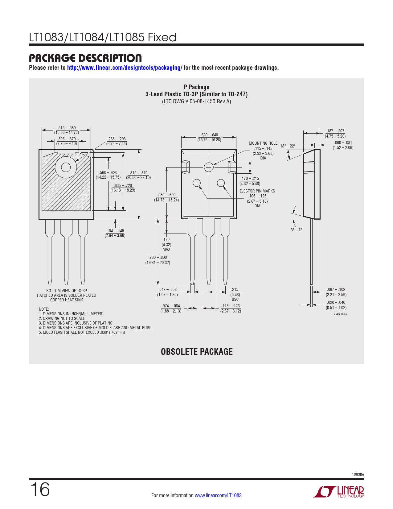 package DescripTion Please refer to http://www.linear.com/designtools/packaging/ for the most recent package drawings. P Package 3-Lead Plastic TO-3P (Similar to TO-247) P Package