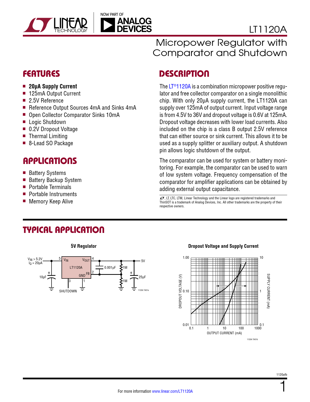 LT1120A Micropower Regulator with Comparator and Shutdown