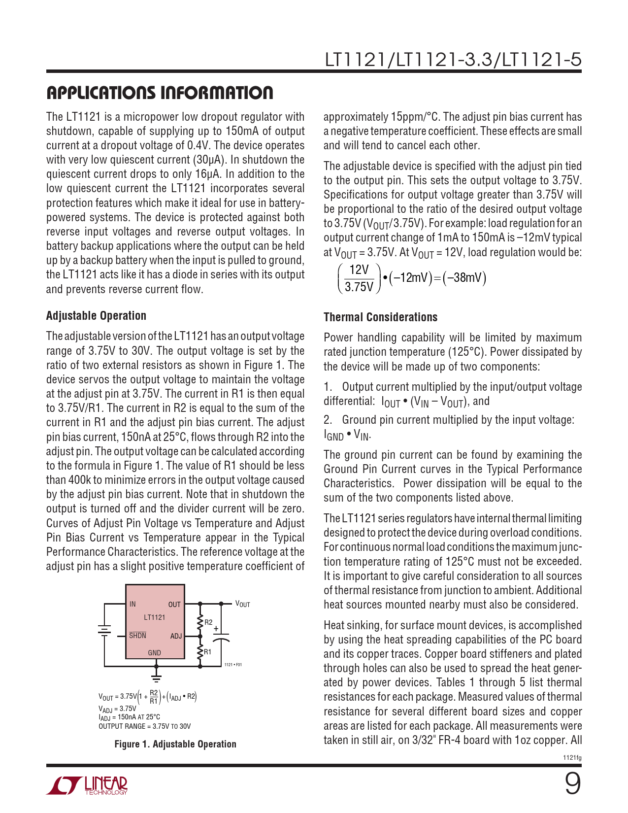 APPLICATIONS INFORMATION. Adjustable Operation. Thermal Considerations. Figure 1. Adjustable Operation
