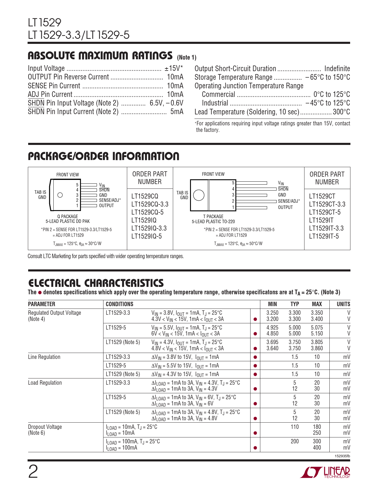 Datasheet LT1529, LT1529-3.3, LT1529-5 (Analog Devices) - 2