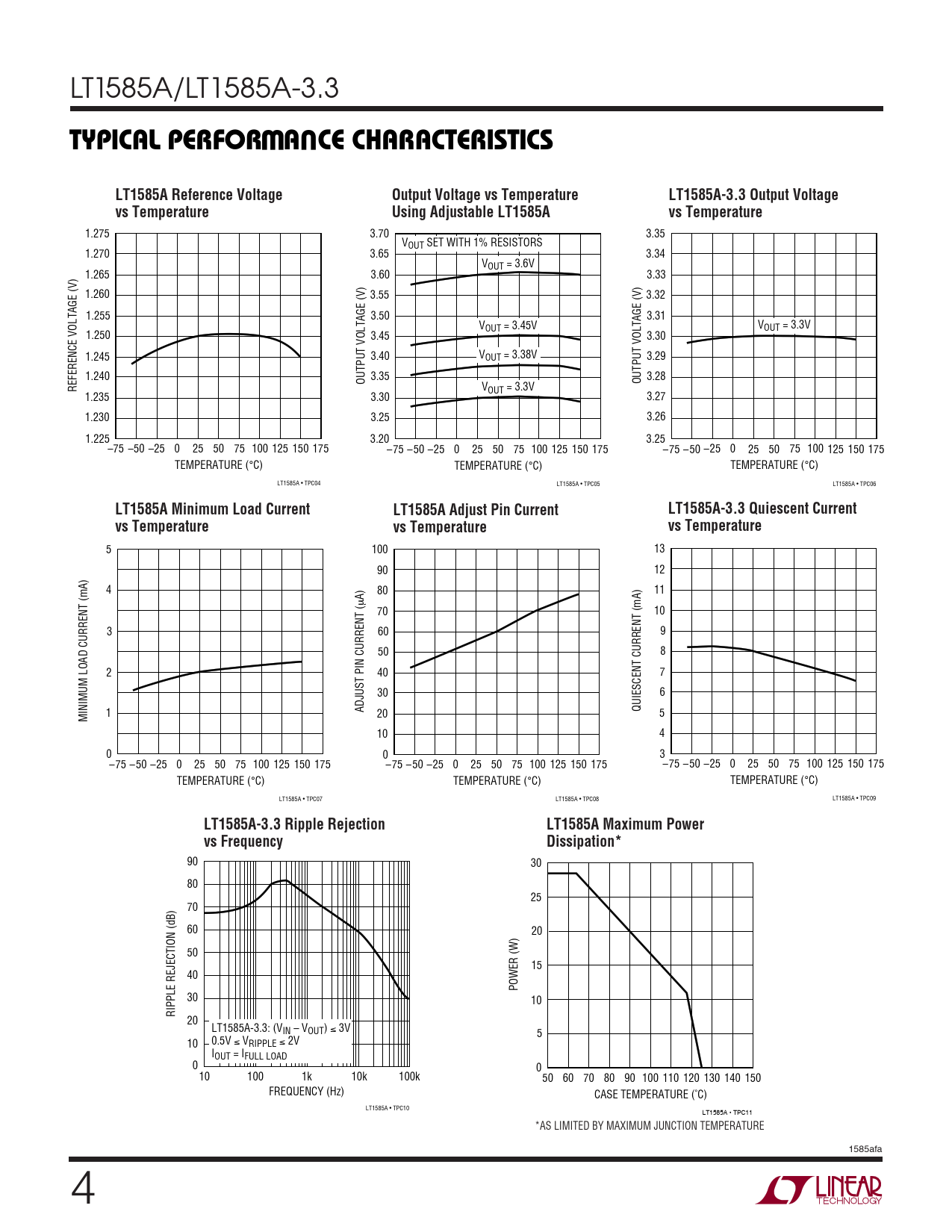 TYPICAL PERFORMANCE CHARACTERISTICS. LT1585A Reference Voltage. Output Voltage vs Temperature. LT1585A-3.3 Output Voltage