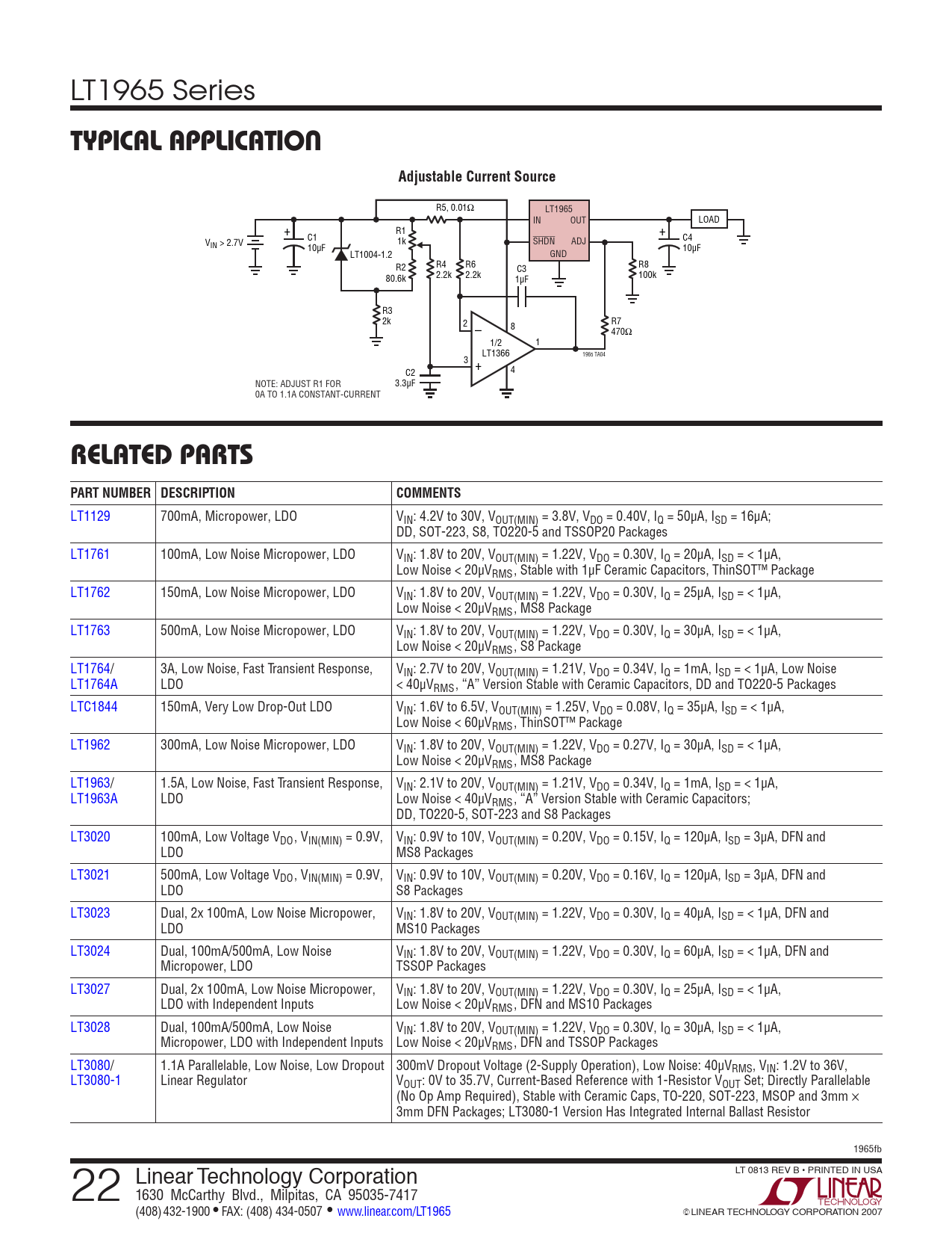 | Pages / Page | 22 / 22 — typical application. Adjustable Current Source. relateD parts PART NUMBER … |