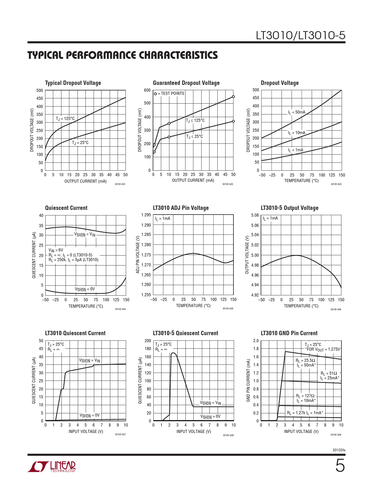 Quiescent Current LT3010 ADJ Pin Voltage LT3010-5 Output Voltage