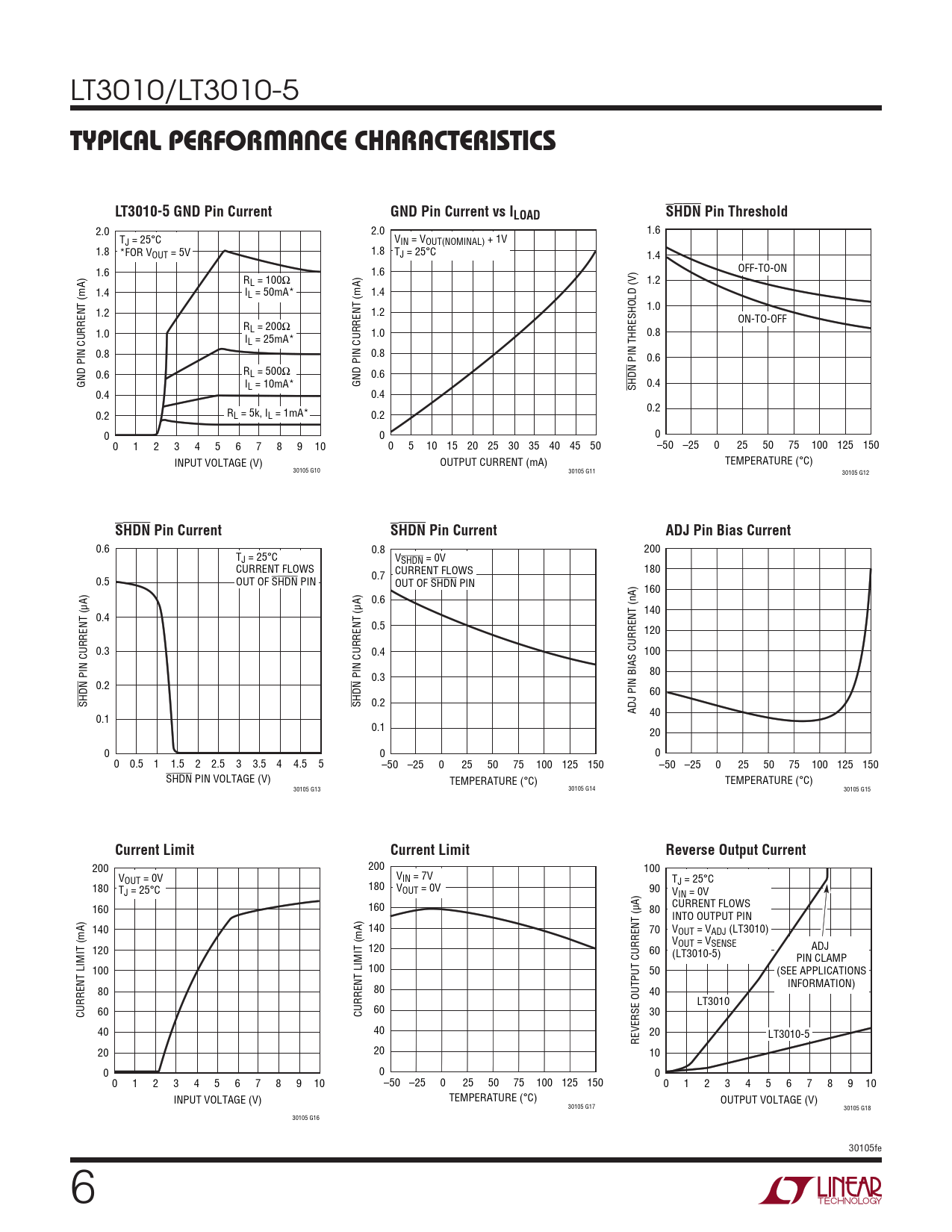 | Pages / Page | 18 / 6 — TYPICAL PERFORMANCE CHARACTERISTICS. LT3010-5 GND Pin Current. GND Pin … |