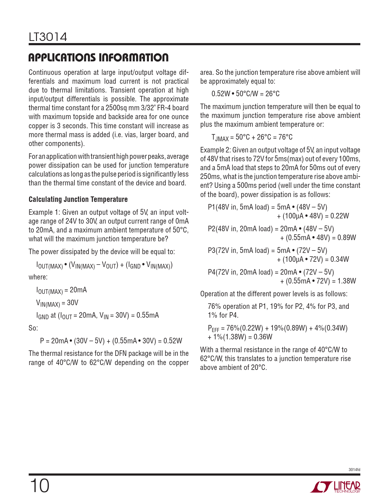 APPLICATIONS INFORMATION Calculating Junction Temperature