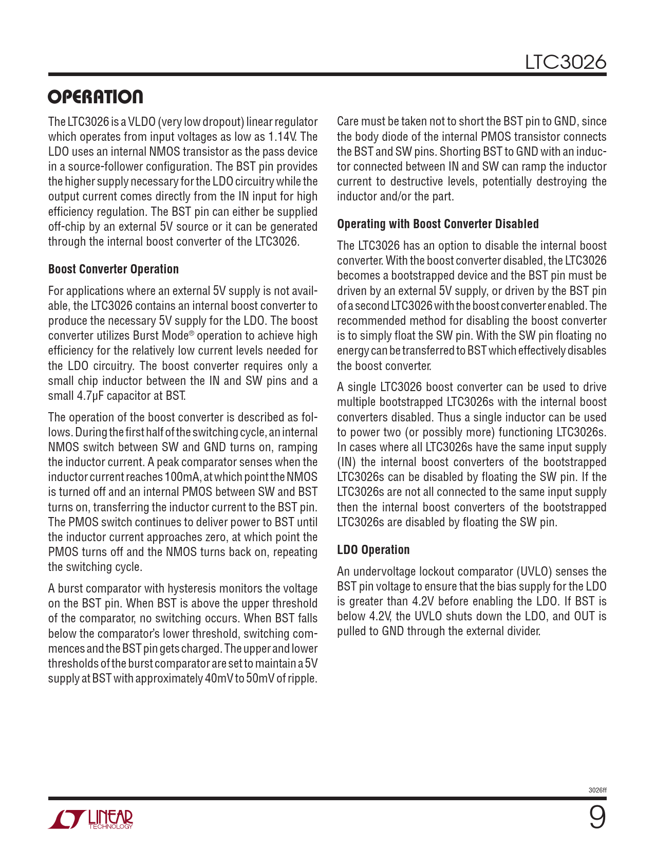 operaTion. Operating with Boost Converter Disabled. Boost Converter Operation. LDO Operation