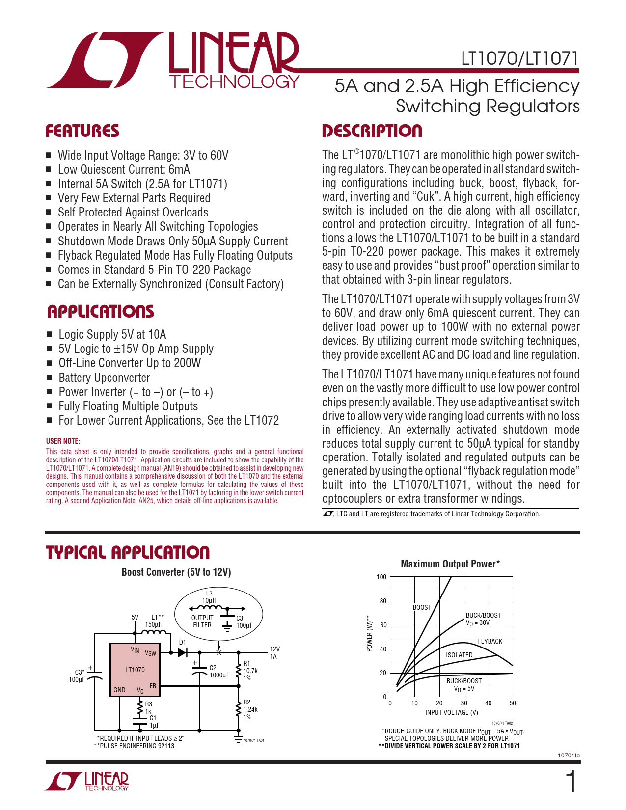 Datasheet LT1070, LT1071 (Linear Technology)