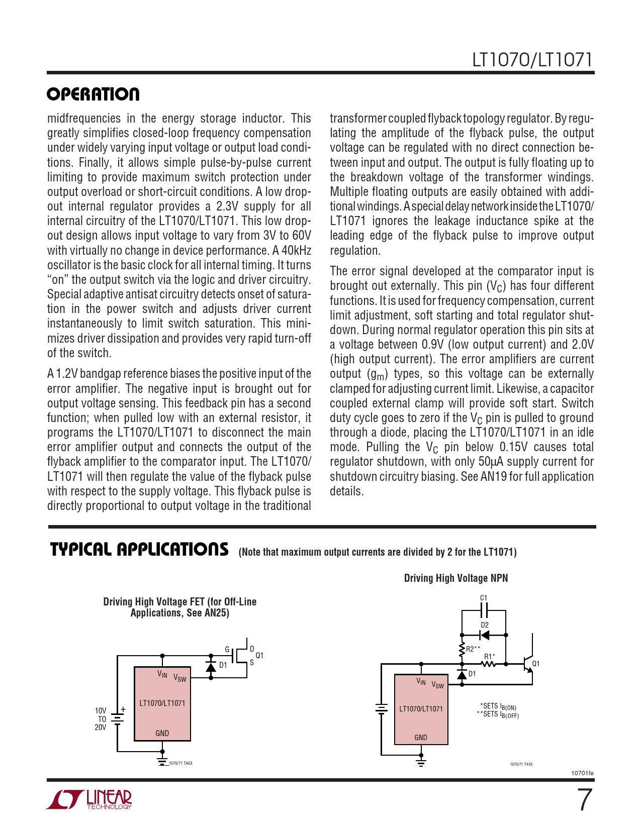 OPERATION. TYPICAL APPLICATIONS (Note that maximum output currents are divided by 2 for the LT1071)