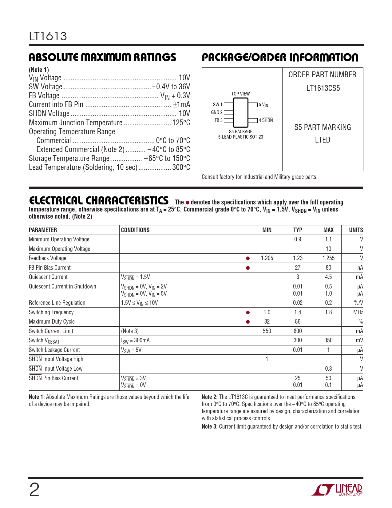 Datasheet Linear Technology LT1613 (Linear Technology) - 2
