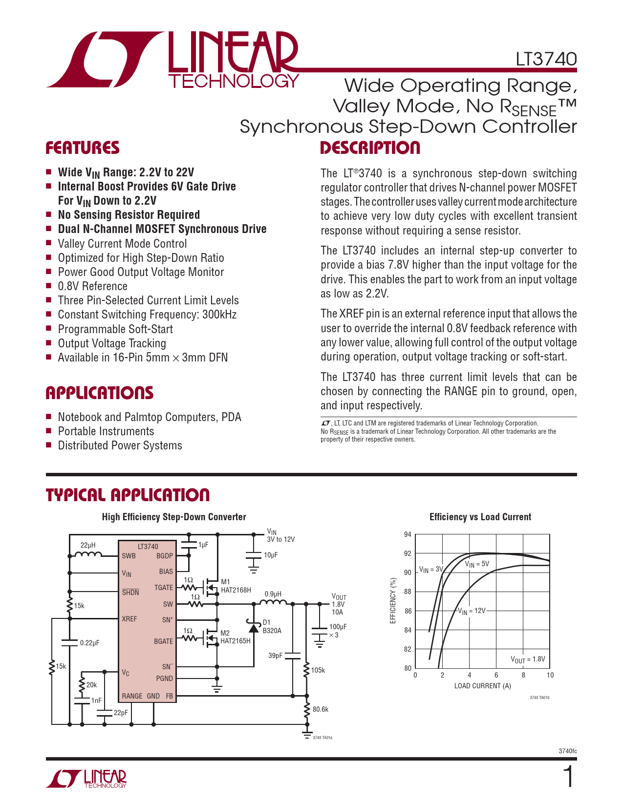 chosen by connecting the RANGE pin to ground, open, and input respectively. n Notebook and Palmtop Computers, PDA L, LT, LTC and LTM are registered trademarks of Linear Technology Corporation. n Portable Instruments No RSENSE is a trademark of Linear Technology Corporation. All other trademarks are the property of their respective owners. n Distributed Power Systems