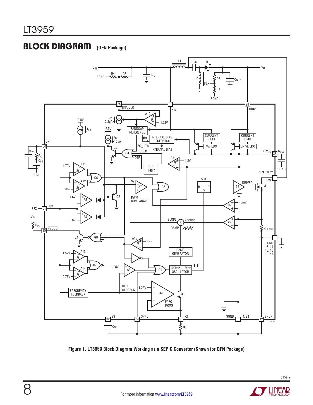 block DiagraM (QFN Package). Figure 1. LT3959 Block Diagram Working as a SEPIC Converter (Shown for QFN Package)