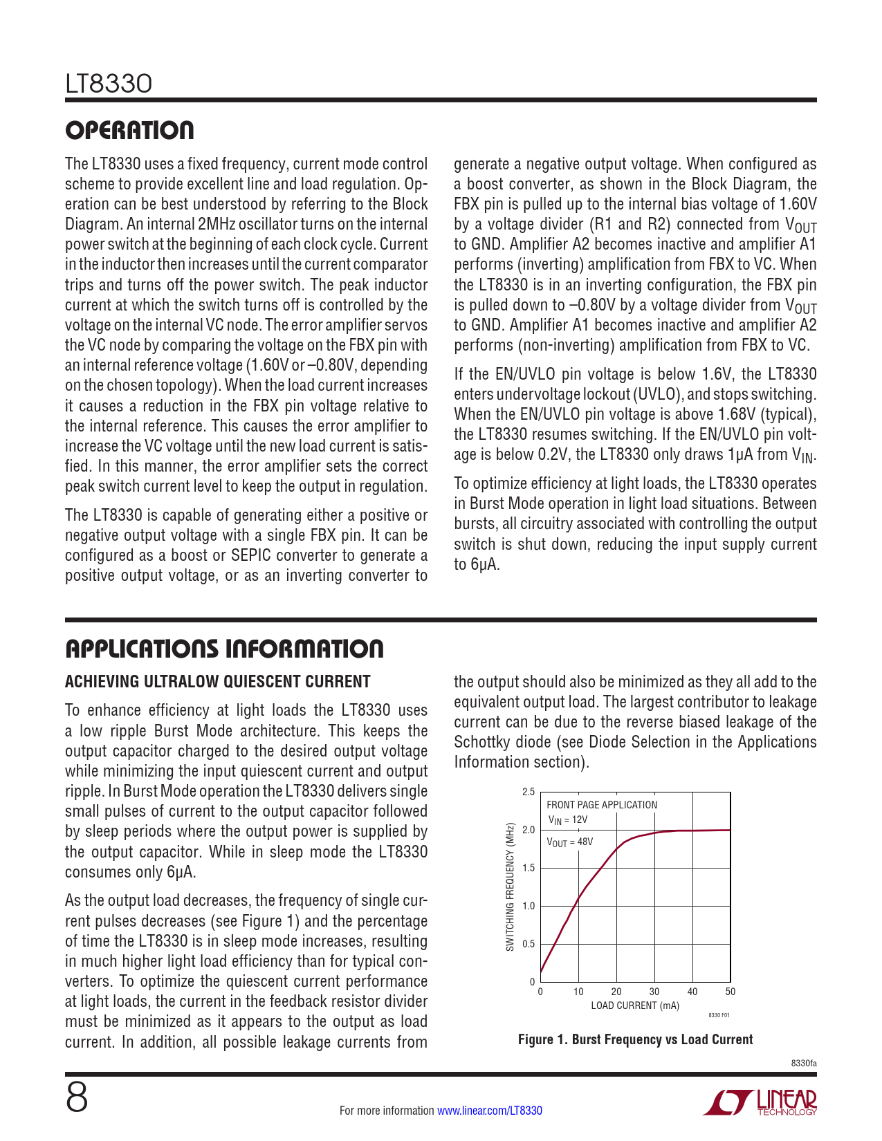 operaTion. applicaTions inForMaTion ACHIEVING ULTRALOW QUIESCENT CURRENT. Figure 1. Burst Frequency vs Load Current