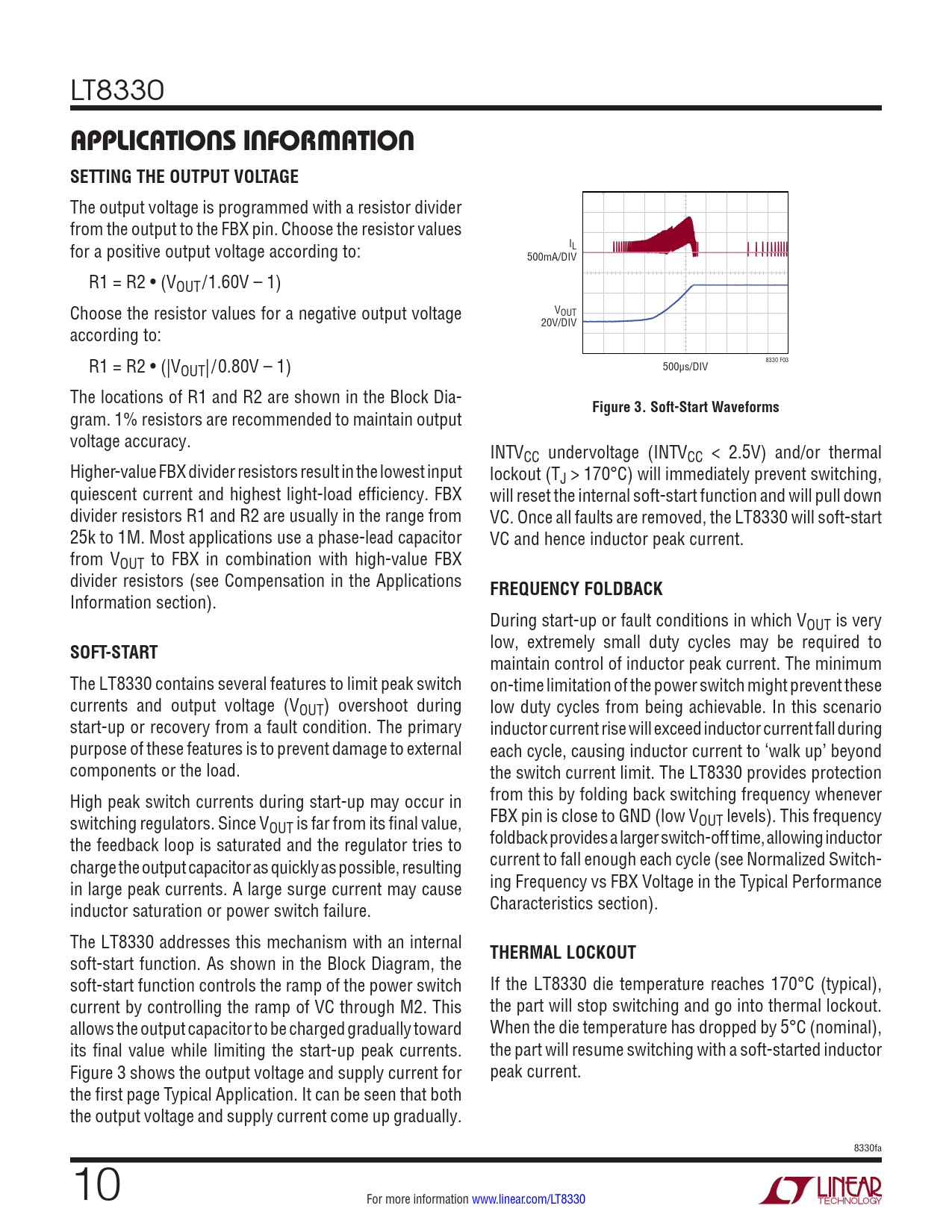 applicaTions inForMaTion SETTING THE OUTPUT VOLTAGE Figure 3 Soft-Start Waveforms FREQUENCY FOLDBACK SOFT-START