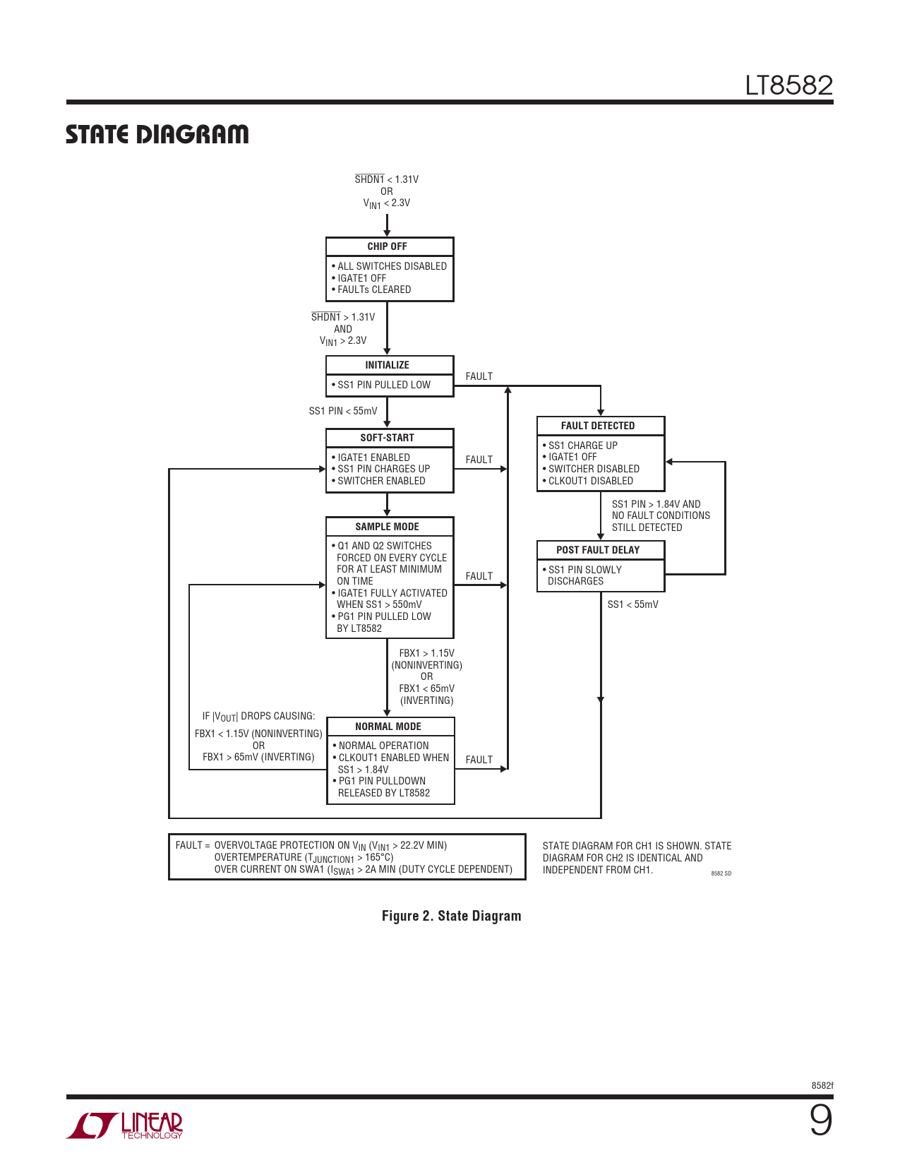 STATE DIAGRAM. CHIP OFF. INITIALIZE. FAULT DETECTED. SOFT-START. SAMPLE MODE. POST FAULT DELAY. NORMAL MODE. Figure 2. State Diagram