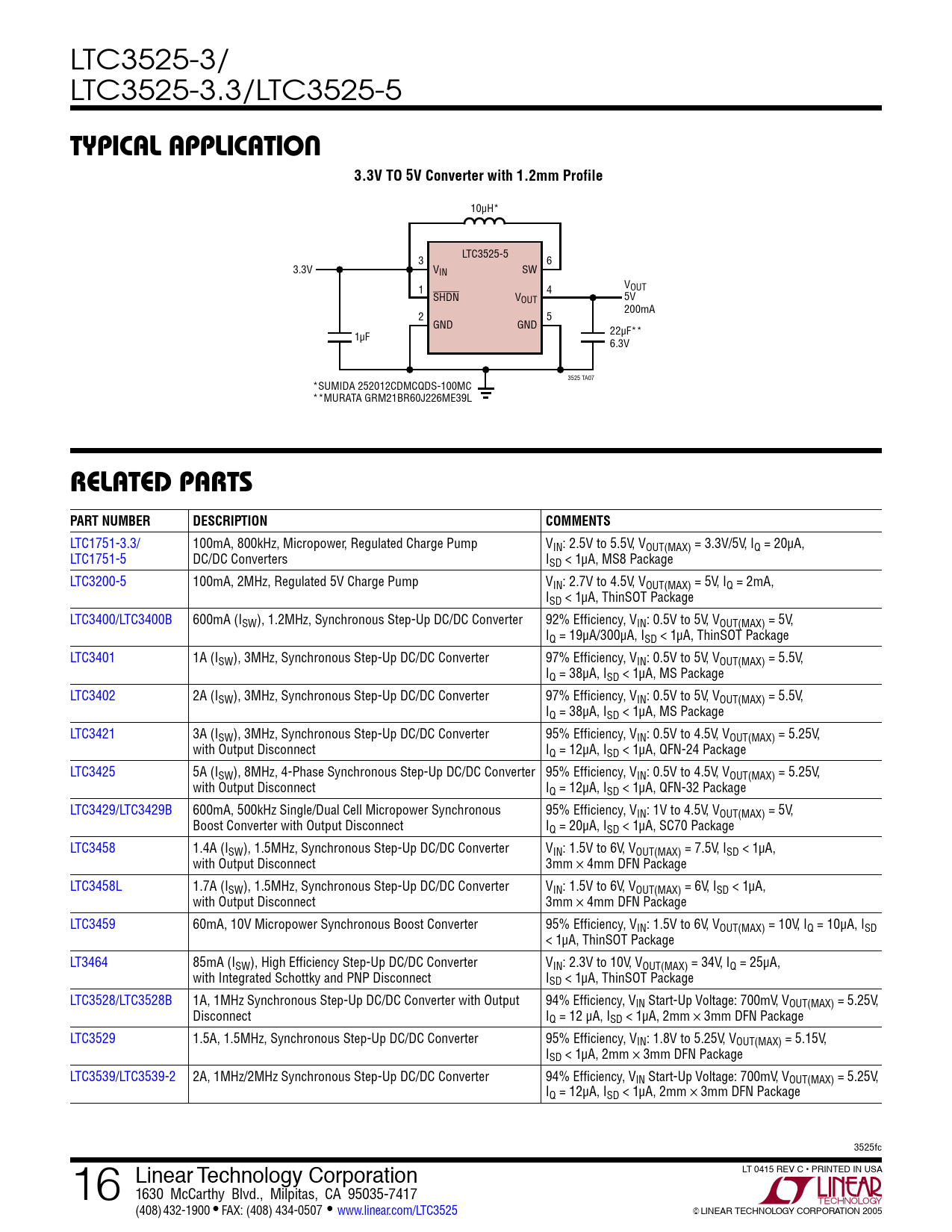 | Pages / Page | 16 / 16 — Typical applicaTion. 3.3V TO 5V Converter with 1.2mm Profile. relaTeD … |