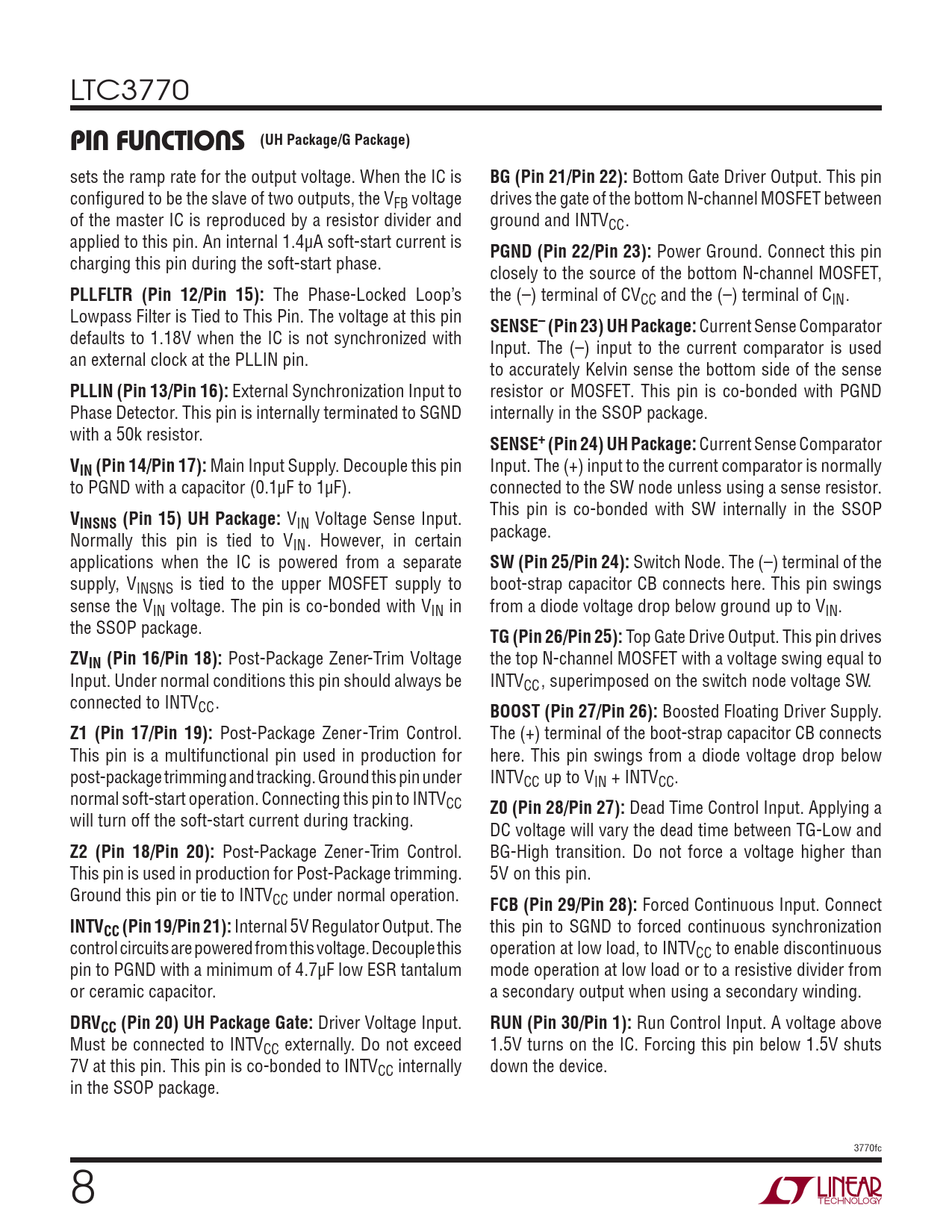 PIN FUNCTIONS (UH Package/G Package). BG (Pin 21/Pin 22):. PGND (Pin 22/Pin 23):. PLLFLTR (Pin 12/Pin 15):
