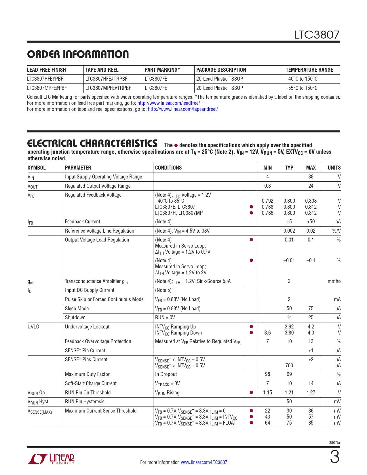 Datasheet LTC3807 (Analog Devices) - 3