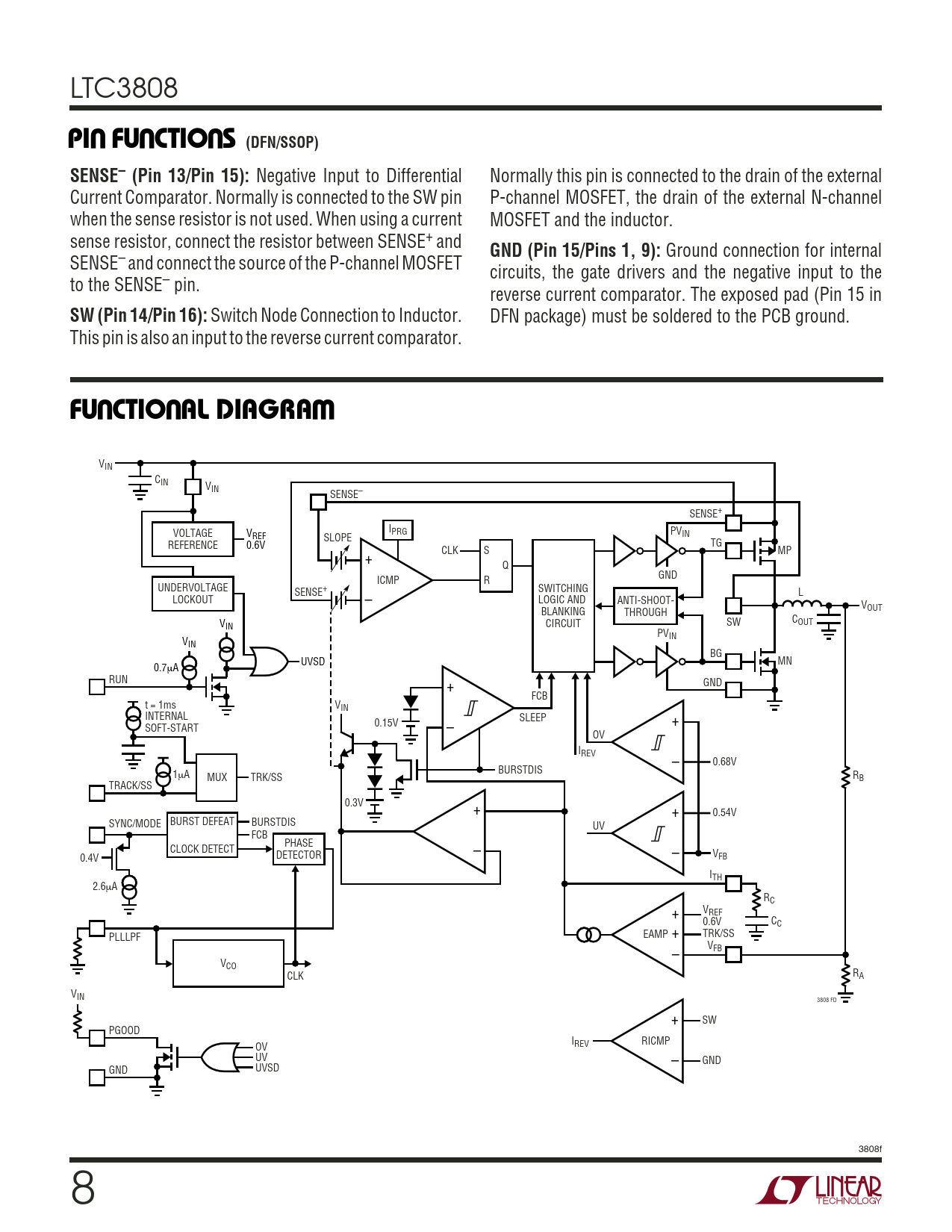 PI FU CTIO S (DFN/SSOP). SENSE– (Pin 13/Pin 15):. GND (Pin 15/Pins 1, 9):. SW (Pin 14/Pin 16):. FU CTIO AL DIAGRA