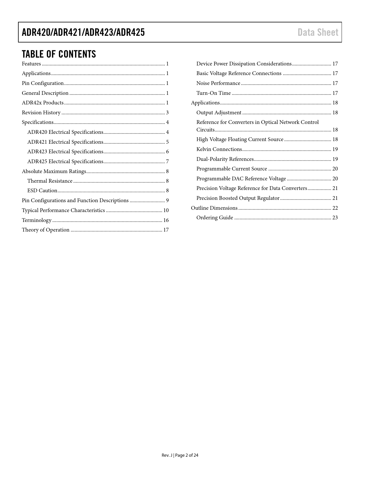 Pages / Page24 / 2 — ADR420/ADR421/ADR423/ADR425. Data Sheet. TABLE OF CONTENTS