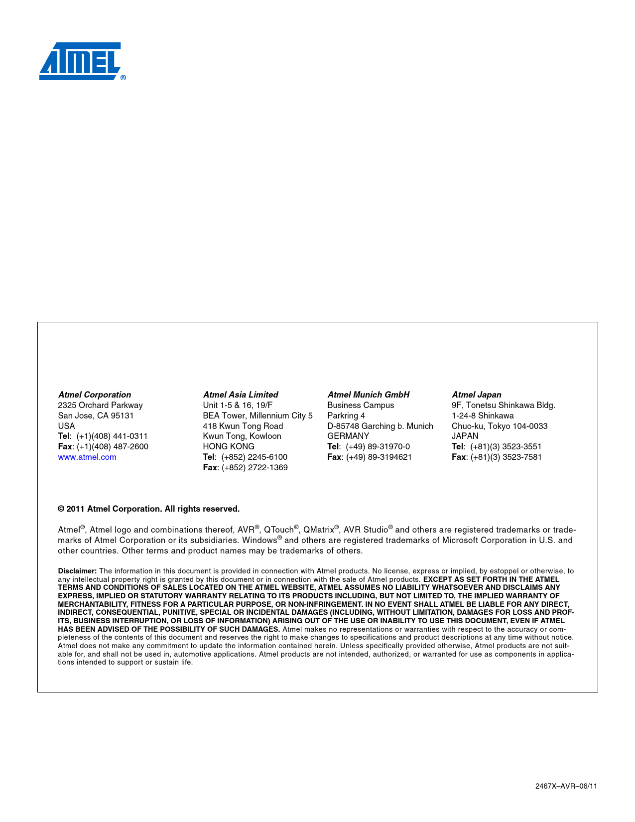 Atmel Corporation. Atmel Asia Limited. Atmel Munich GmbH. Atmel Japan. Tel. Fax. © 2011 Atmel Corporation. All rights reserved