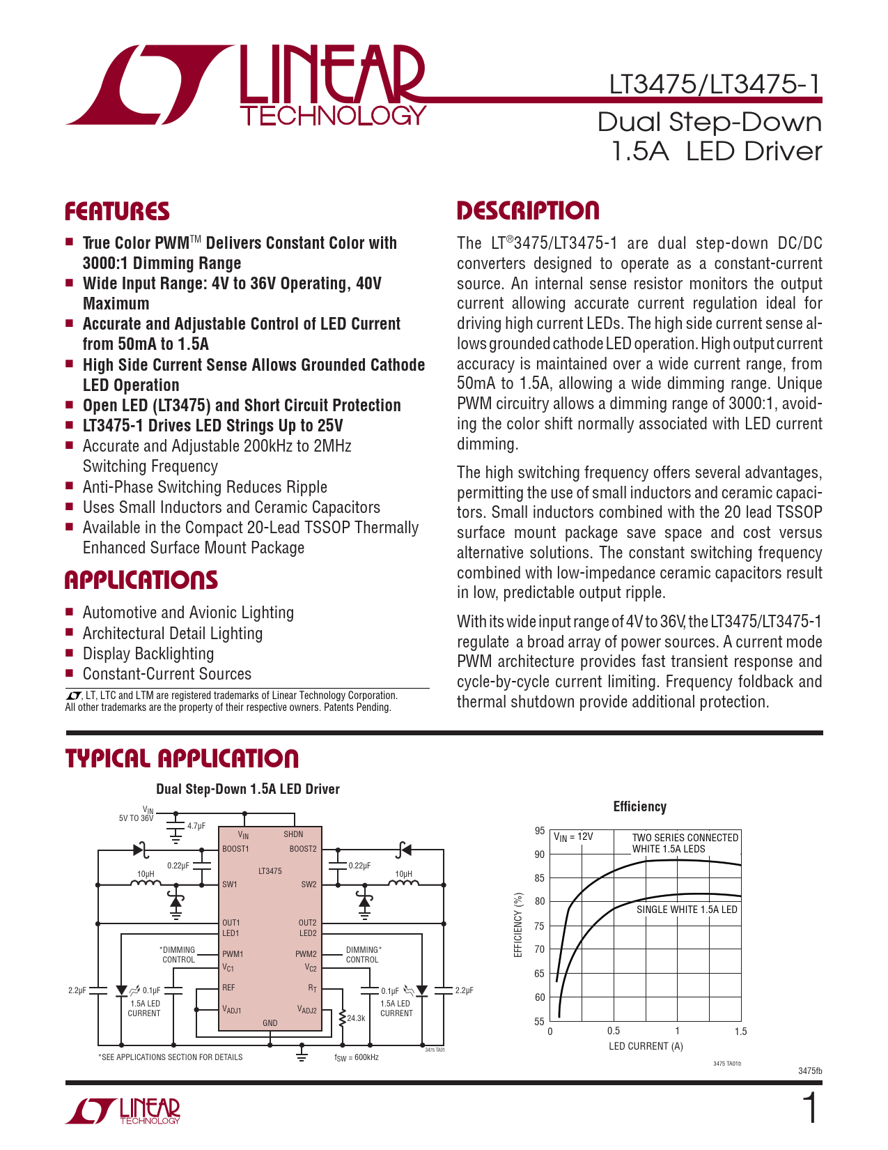 Datasheet LT3475, LT3475-1 Analog Devices