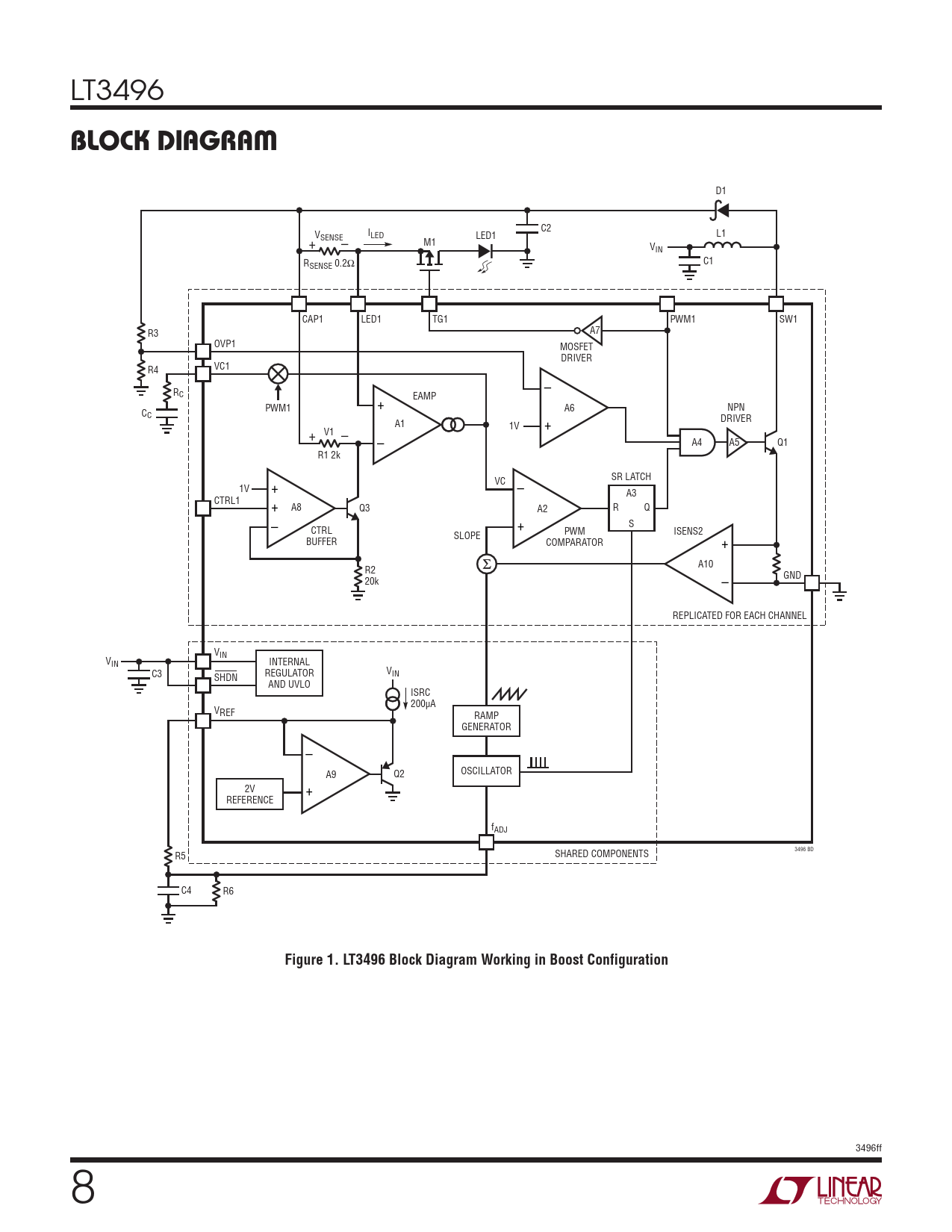| Pages / Page | 20 / 8 — Figure 1. LT3496 Block Diagram Working in Boost Configuration |