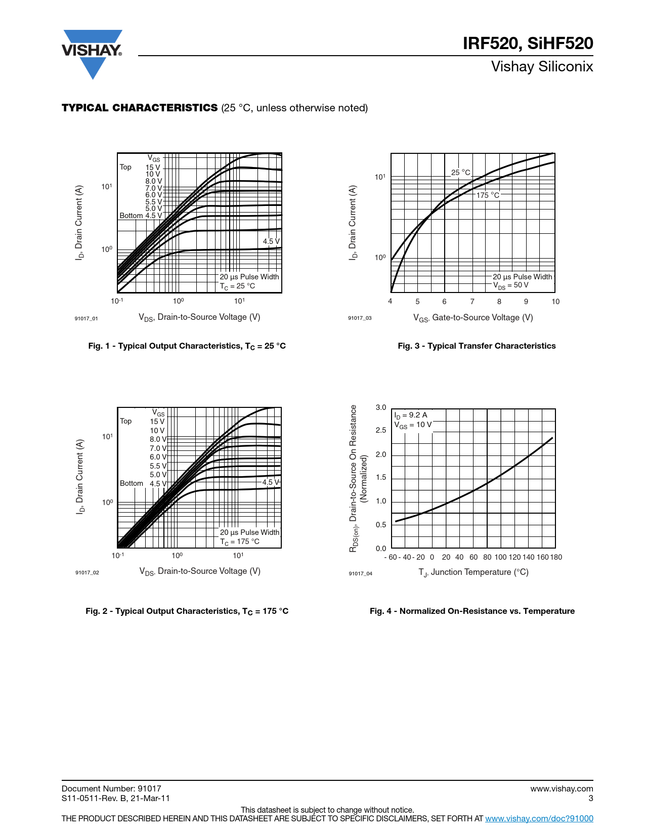 Datasheet IRF520, SiHF520 (Vishay) - 3