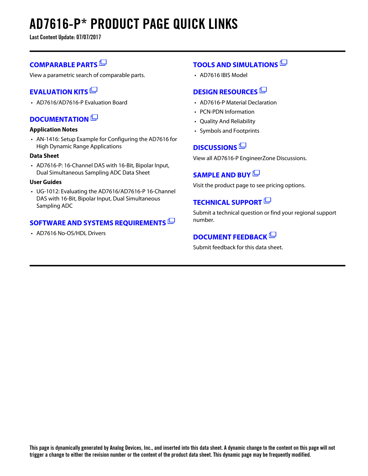 This page is dynamically generated by Analog Devices, Inc., and inserted into this data sheet. A dynamic change to the content on this page will not trigger a change to either the revision number or the content of the product data sheet. This dynamic page may be frequently modified.