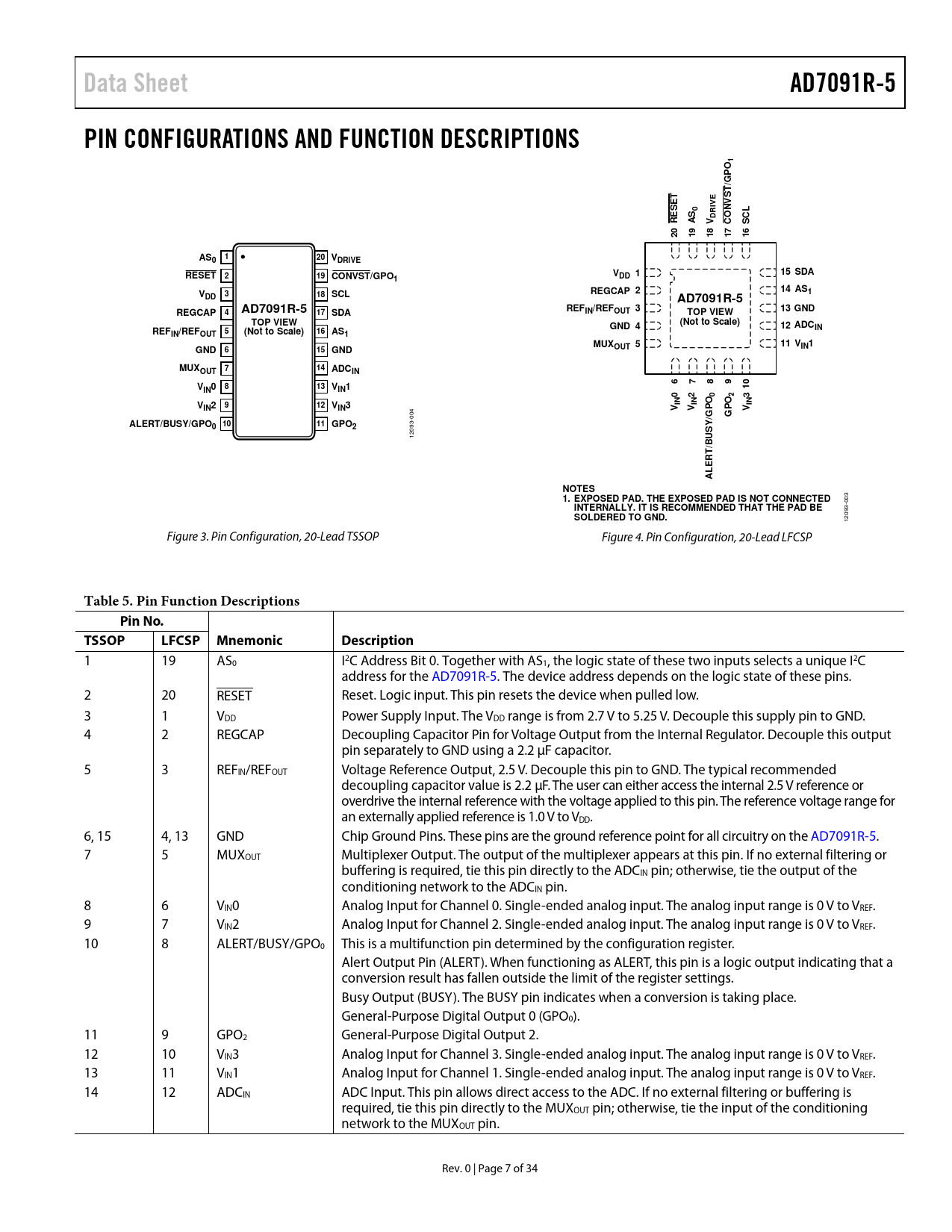 Pages / Page35 / 8 — Data Sheet. AD7091R-5. PIN CONFIGURATIONS AND FUNCTION DESCRIPTIONS. …