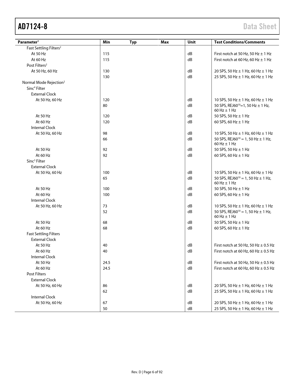 | Pages / Page | 93 / 7 — AD7124-8. Data Sheet. Parameter1. Min. Typ. Max. Unit. Test … |