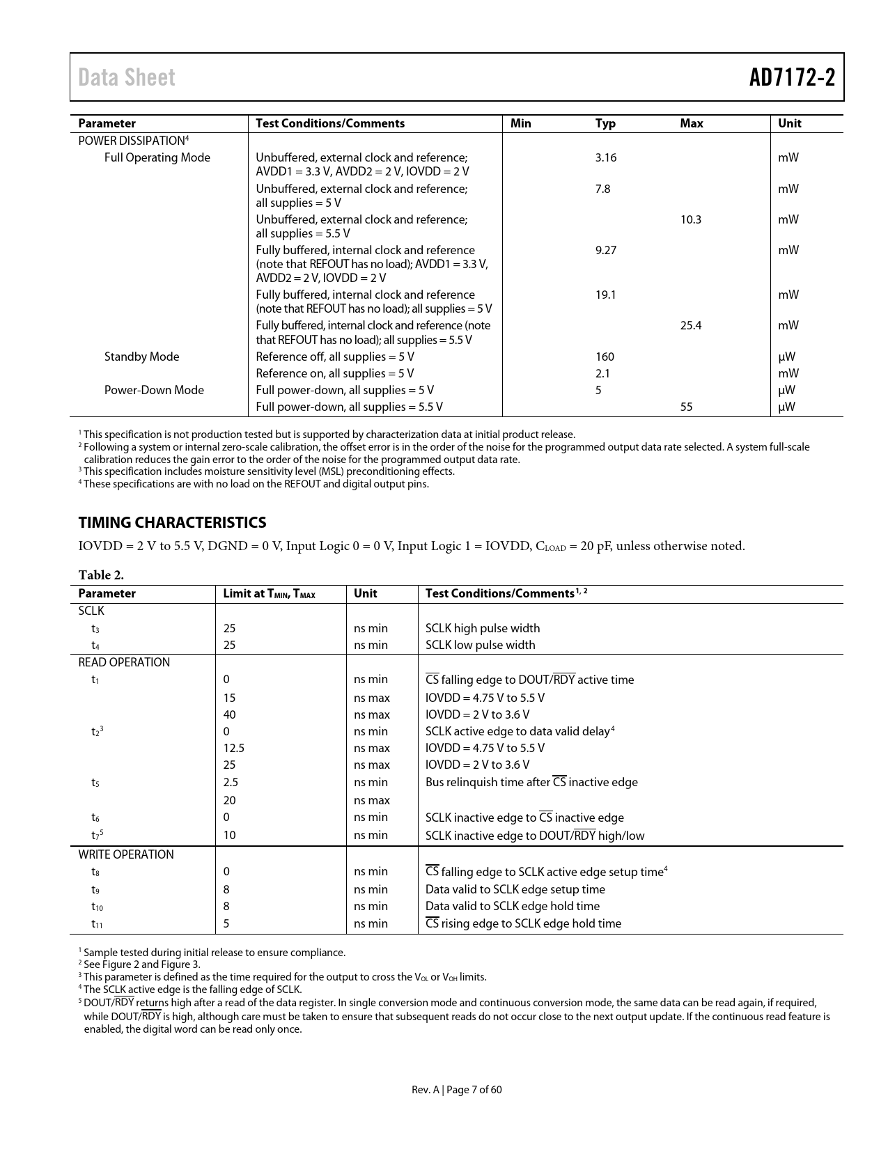 Data Sheet AD7172-2 Parameter Test Conditions/Comments Min Typ Max Unit TIMING CHARACTERISTICS Table 2 Parameter