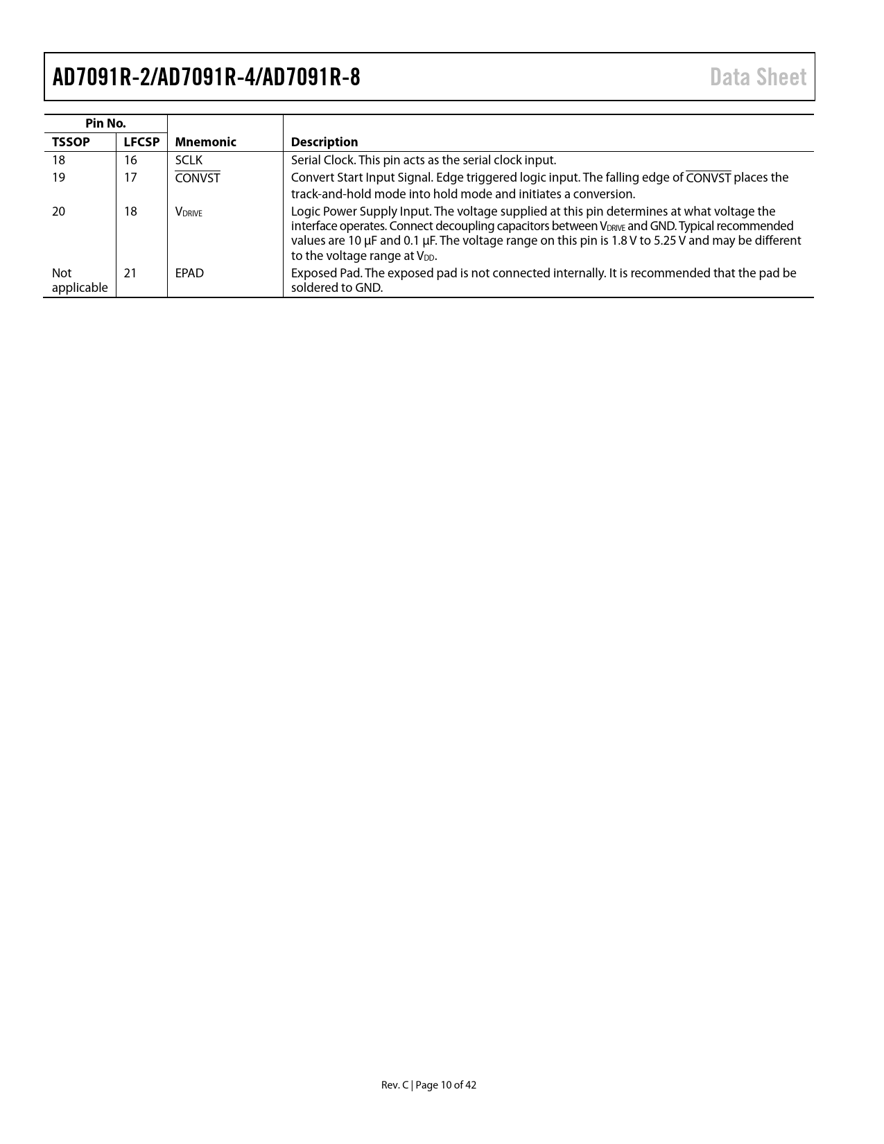 Pages / Page42 / 10 — AD7091R-2/AD7091R-4/AD7091R-8. Data Sheet. Pin No. TSSOP. LFCSP Mnemonic. …