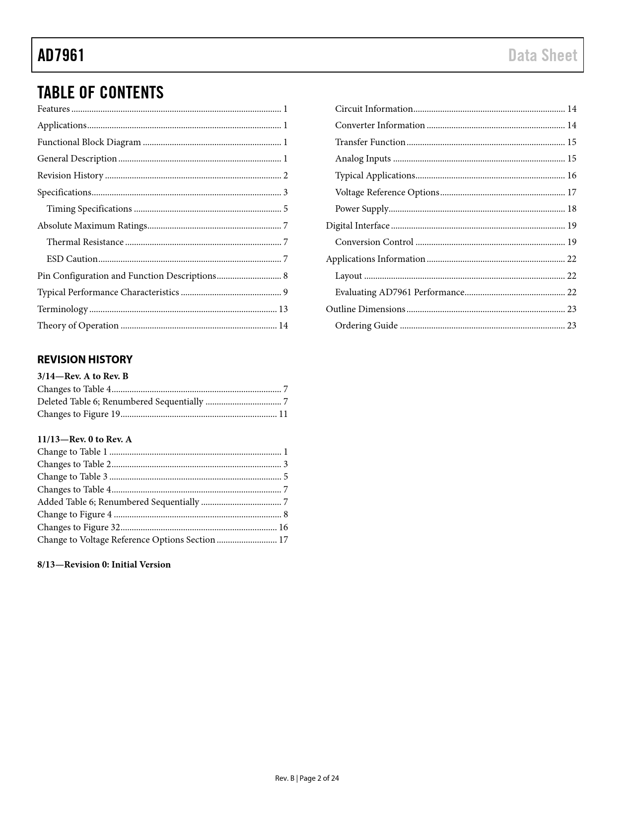 Pages / Page25 / 3 — AD7961. Data Sheet. TABLE OF CONTENTS. REVISION HISTORY. 3/14—Rev. A to …