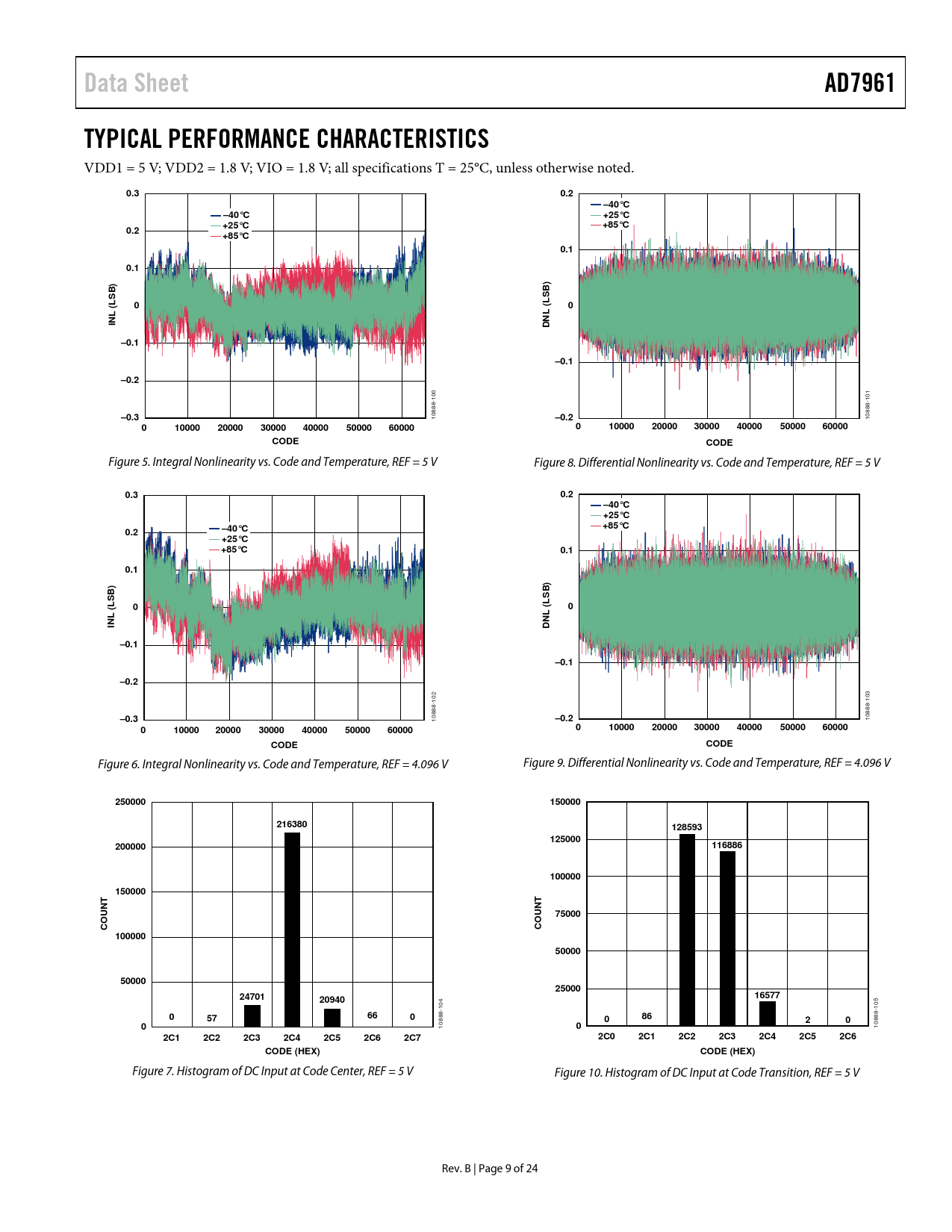 Data Sheet AD7961 TYPICAL PERFORMANCE CHARACTERISTICS 0.3 0.2 –40°C +25°C +85°C 0.1 –0.1 –0.2 –0.3 10000 20000 30000 40000 50000 60000