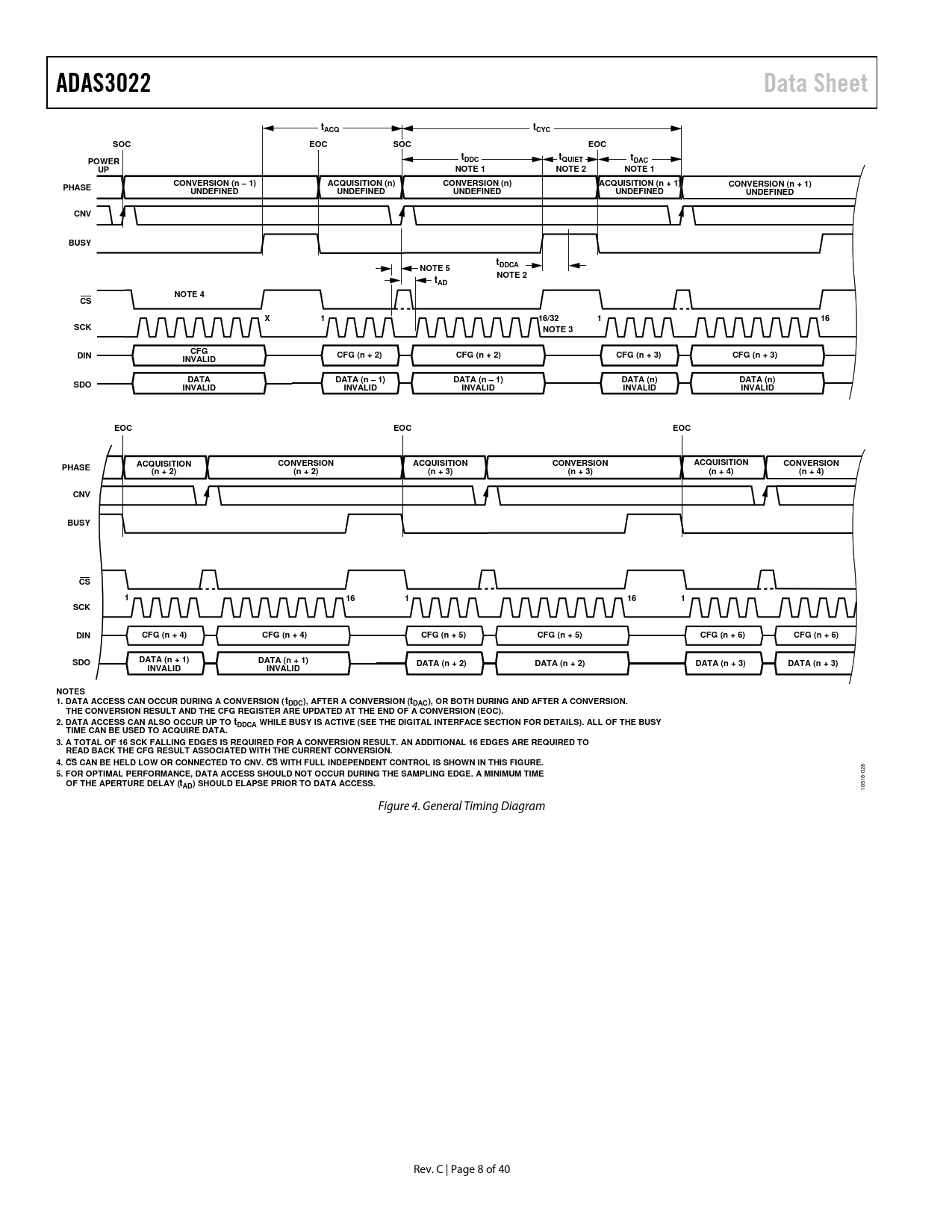 ADAS3022. Data Sheet. ACQ. CYC. SOC. EOC. POWER. DDC. QUIET. tDAC. NOTE 1. NOTE 2. CONVERSION (n – 1). ACQUISITION (n). CONVERSION (n)