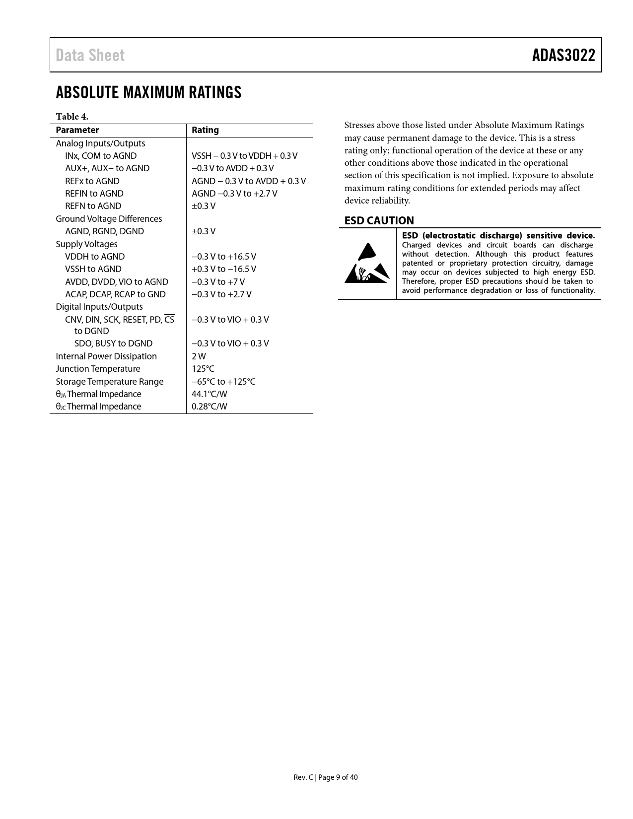 Data Sheet ADAS3022 ABSOLUTE MAXIMUM RATINGS Table 4 Parameter Rating ESD CAUTION