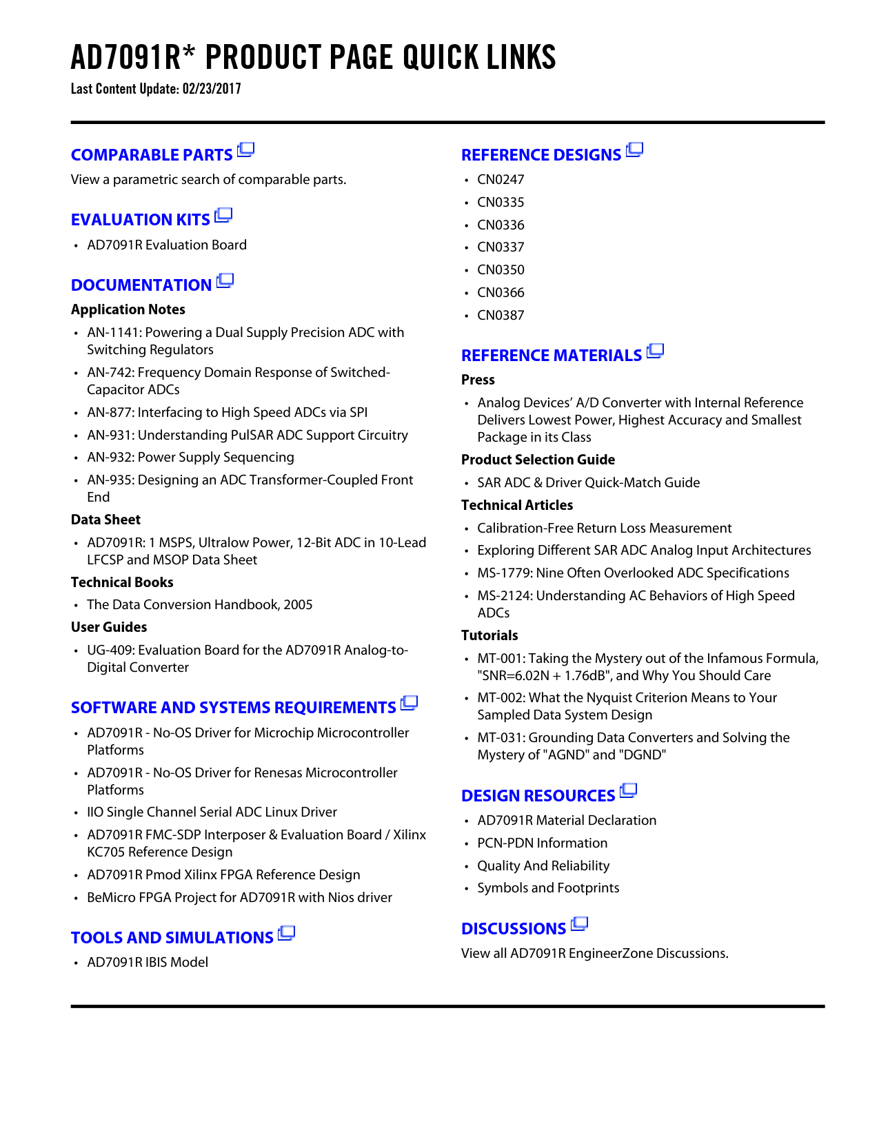 AD7091R* PRODUCT PAGE QUICK LINKS Last Content Update: 02/23/2017. COMPARABLE PARTS. REFERENCE DESIGNS. EVALUATION KITS