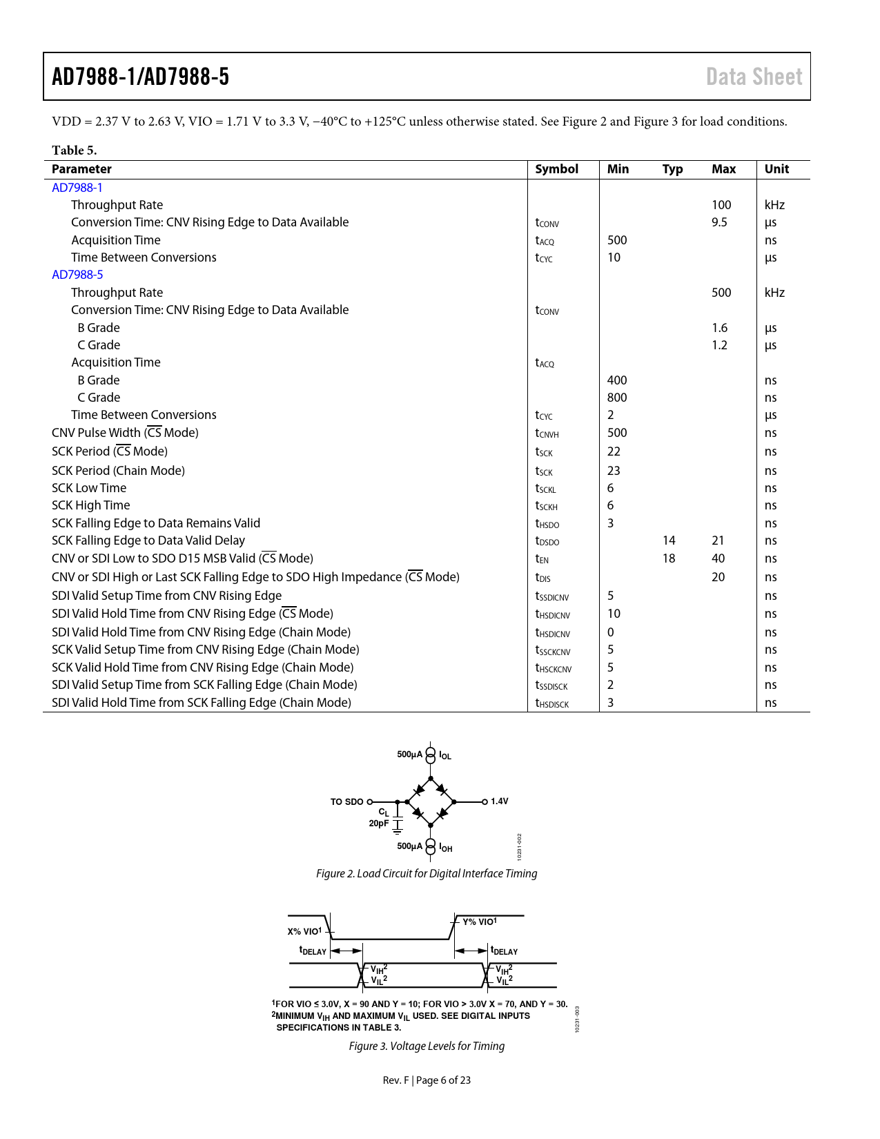 23 /6 — AD7988-1/AD7988-5. Data Sheet. Table 5. Parameter. Symbol. Min. Typ. Max. …