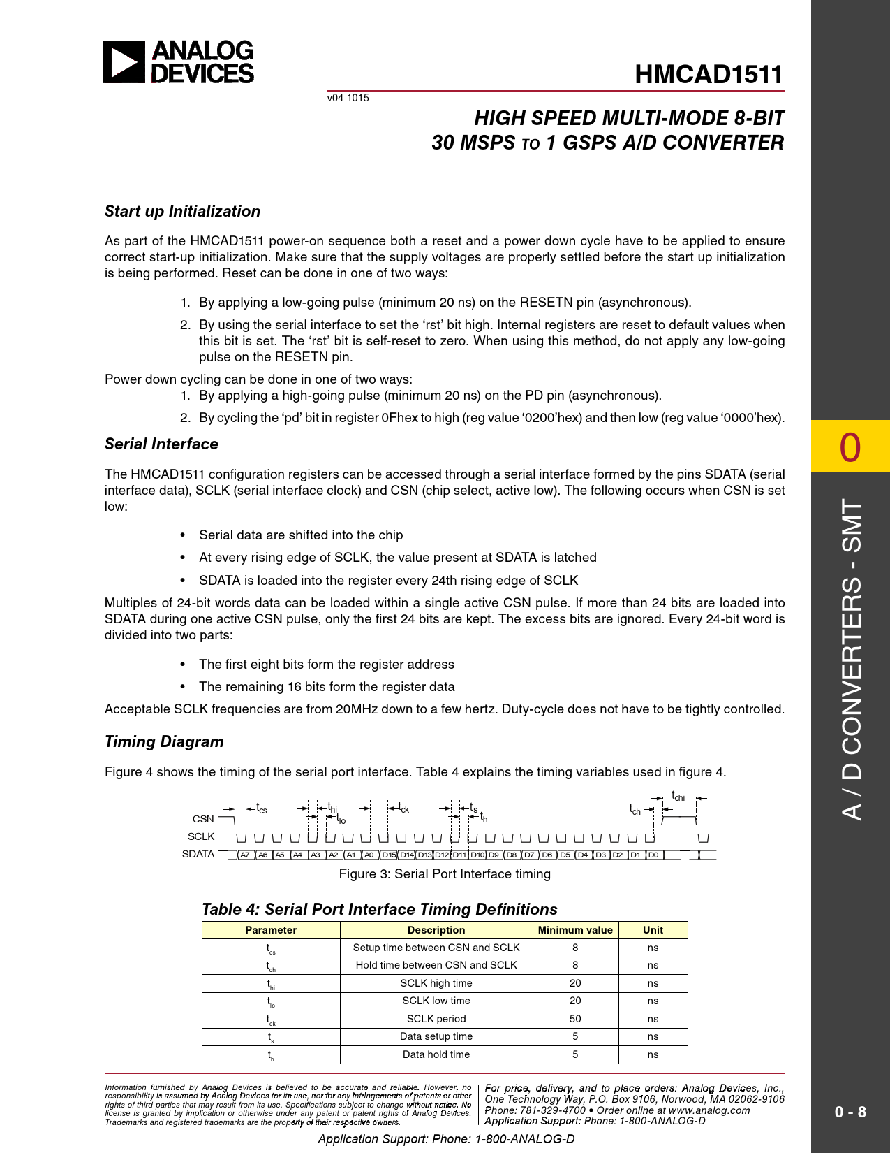 HMCAD1511. HigH Speed Multi-Mode 8-Bit. 30 MSpS to 1 gSpS A/d Converter. Start up initialization. Serial interface