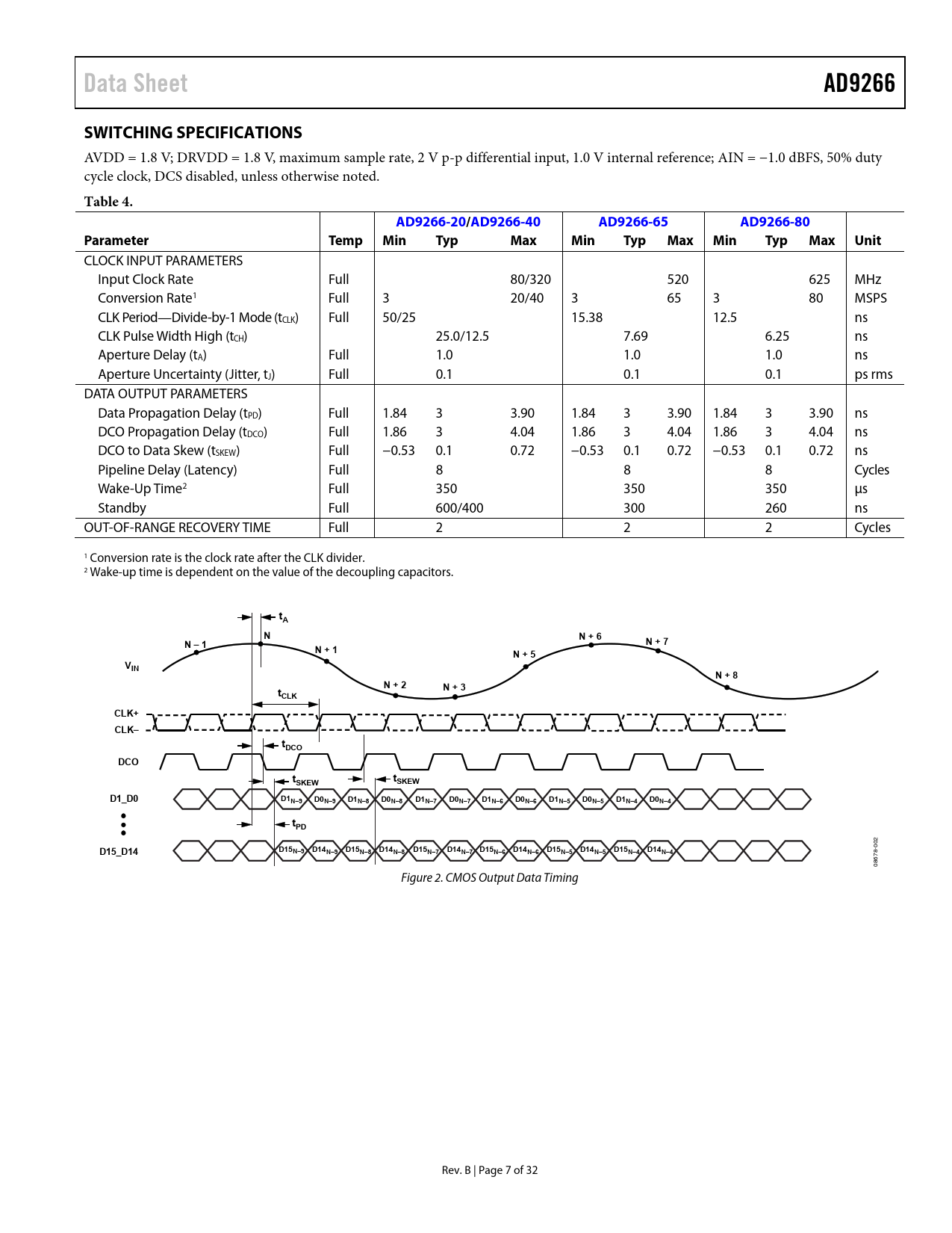 Data Sheet AD9266 SWITCHING SPECIFICATIONS