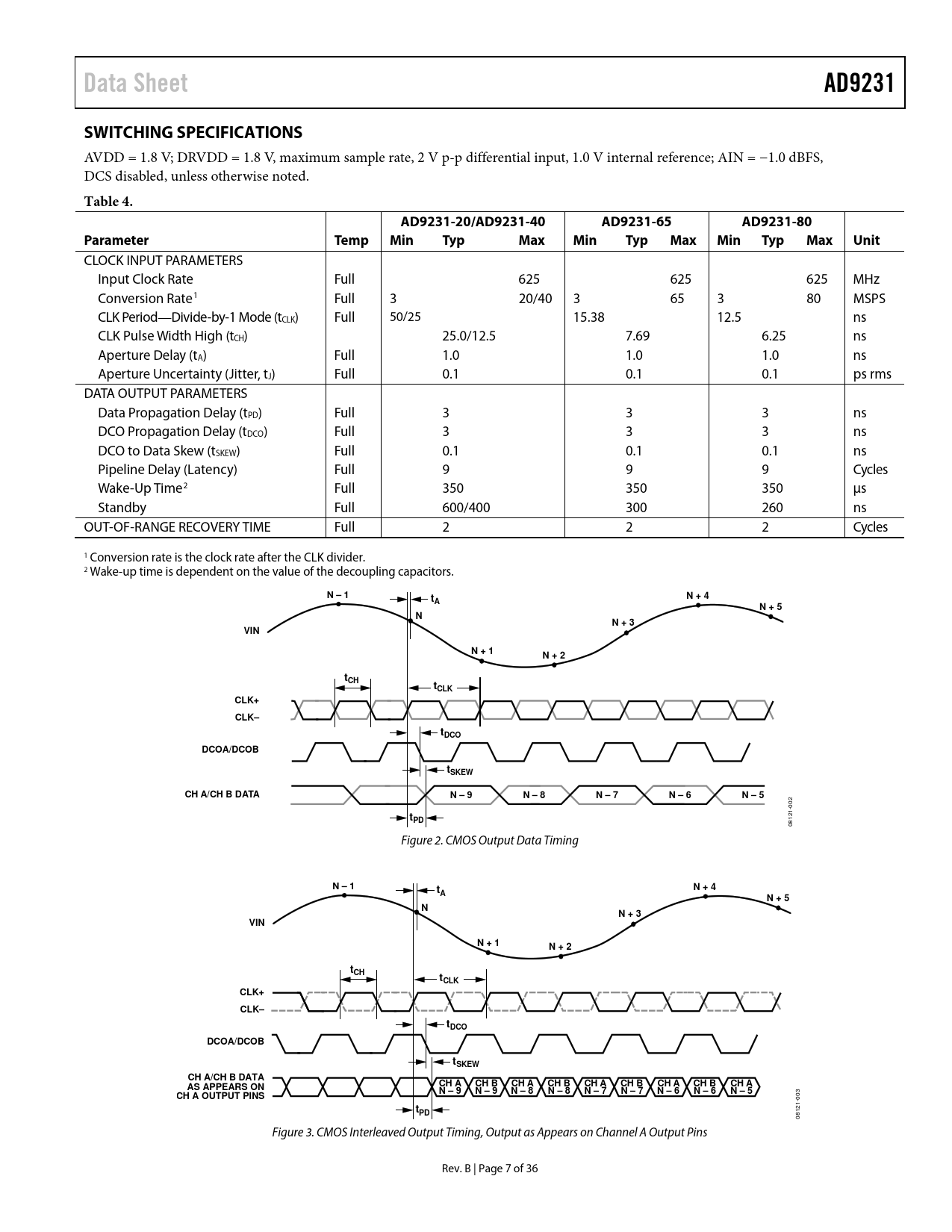 Data Sheet AD9231 SWITCHING SPECIFICATIONS