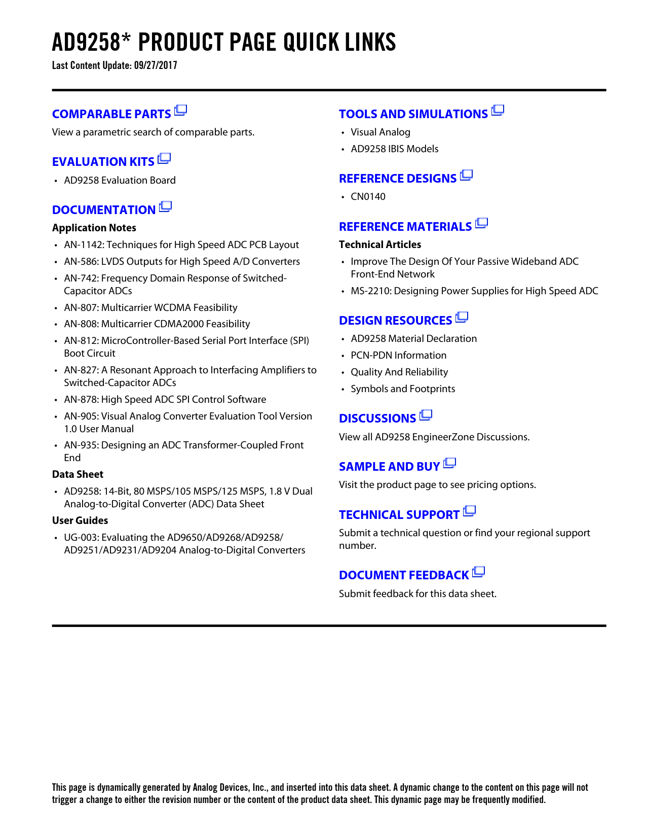 This page is dynamically generated by Analog Devices, Inc., and inserted into this data sheet. A dynamic change to the content on this page will not trigger a change to either the revision number or the content of the product data sheet. This dynamic page may be frequently modified.