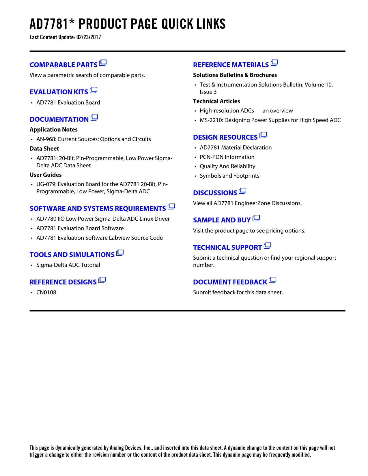 This page is dynamically generated by Analog Devices, Inc., and inserted into this data sheet. A dynamic change to the content on this page will not trigger a change to either the revision number or the content of the product data sheet. This dynamic page may be frequently modified.