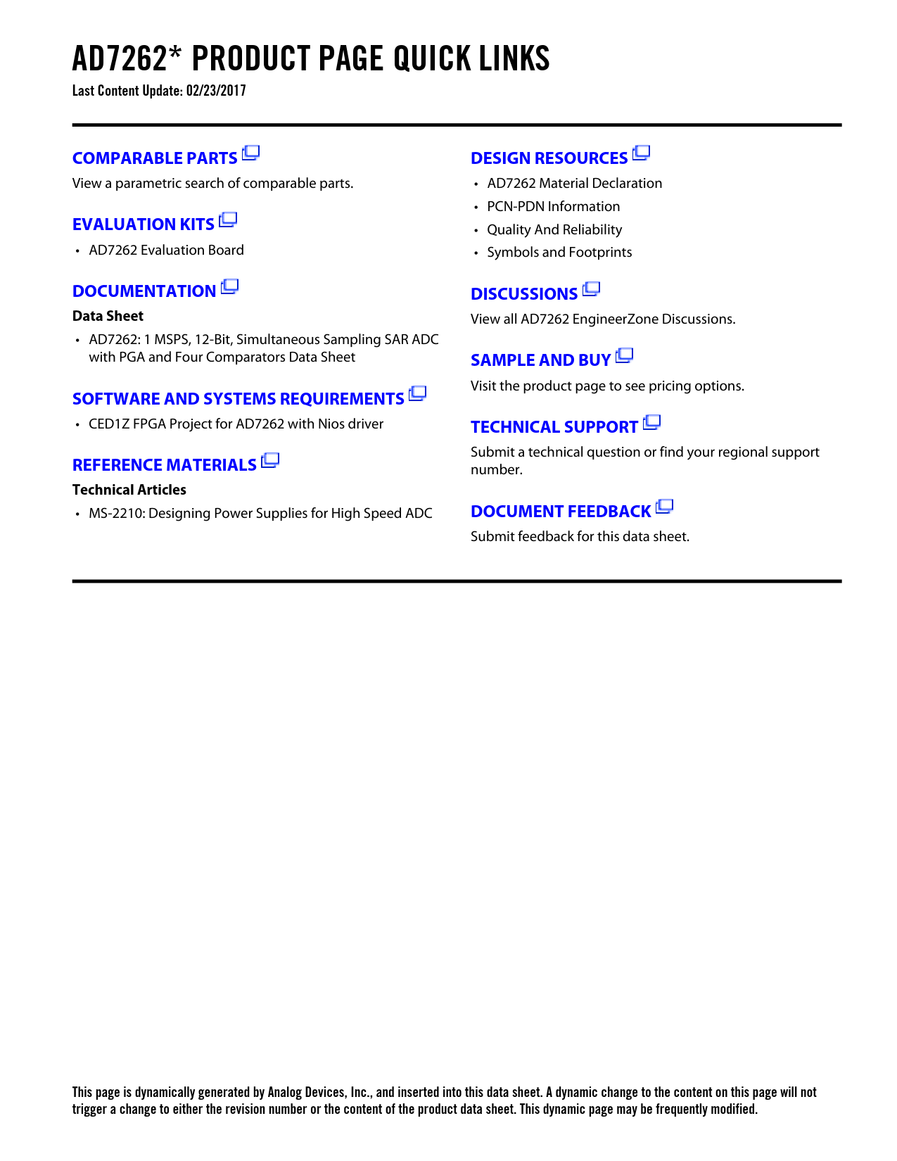 This page is dynamically generated by Analog Devices, Inc., and inserted into this data sheet. A dynamic change to the content on this page will not trigger a change to either the revision number or the content of the product data sheet. This dynamic page may be frequently modified.