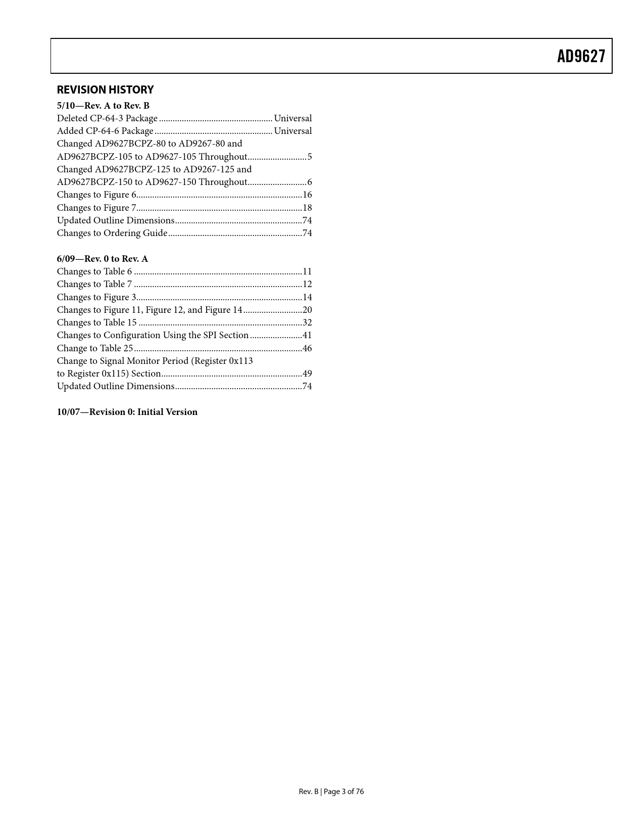 AD9627 REVISION HISTORY 5/10—Rev. A to Rev. B