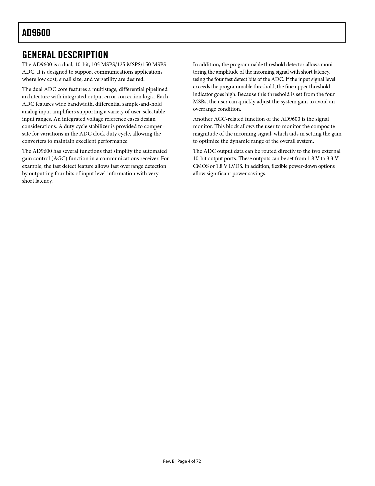 Pages / Page73 / 5 — AD9600. GENERAL DESCRIPTION