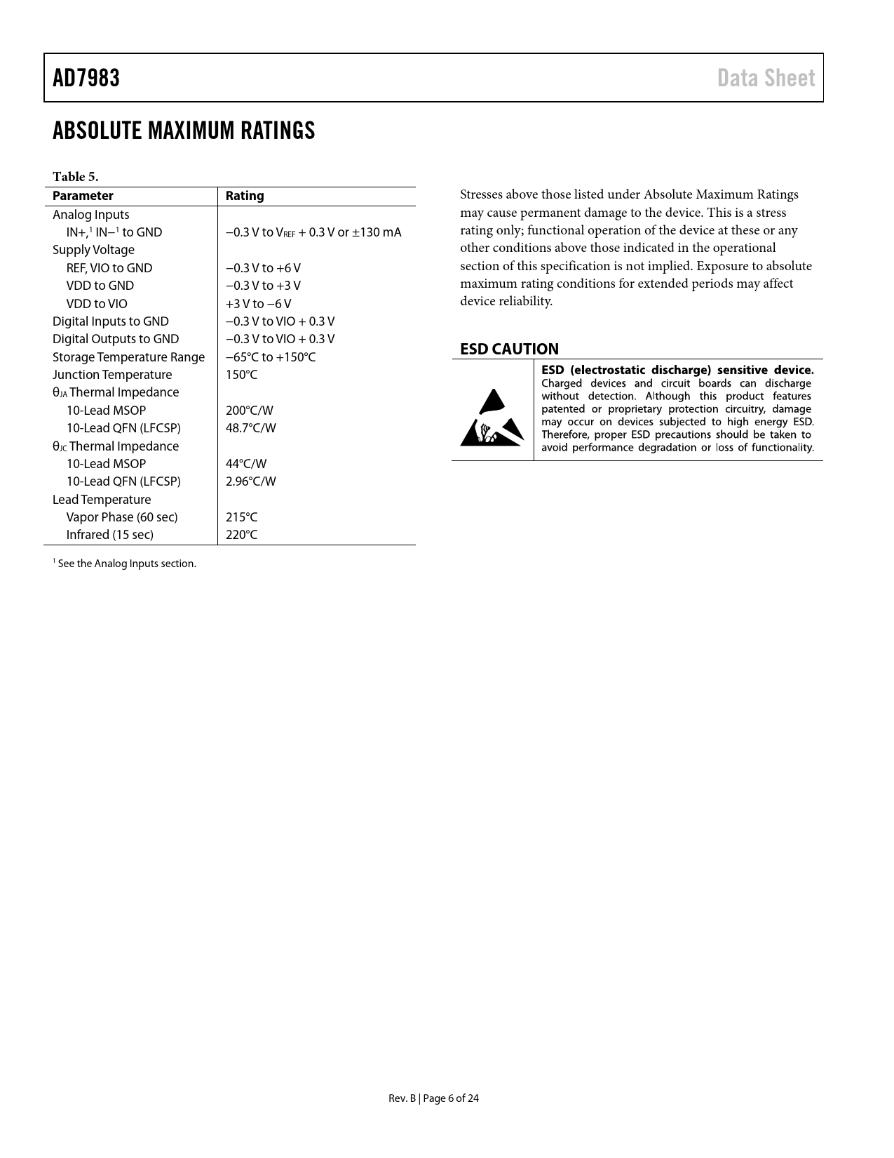 AD7983. Data Sheet. ABSOLUTE MAXIMUM RATINGS. Table 5. Parameter. Rating. ESD CAUTION
