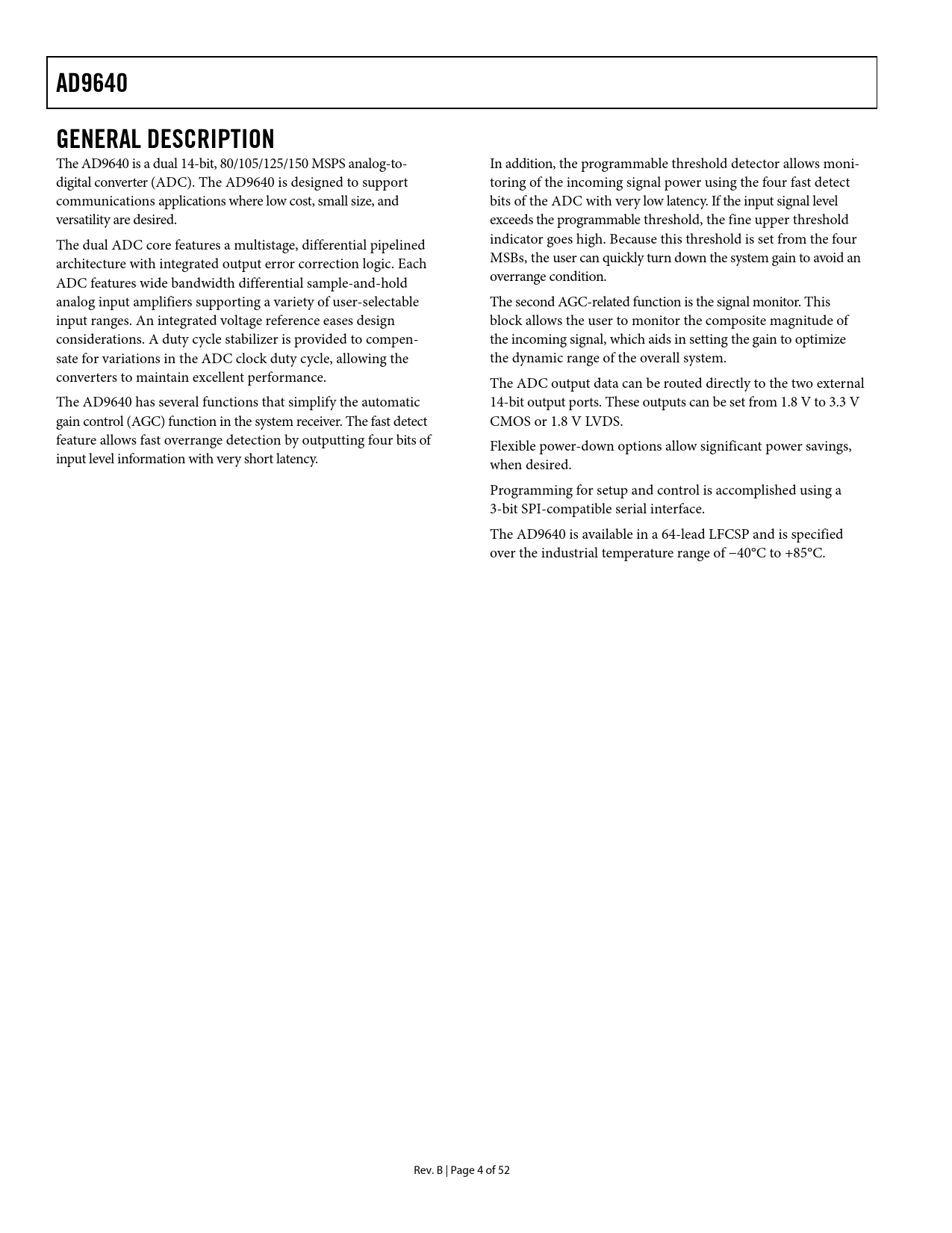 AD9640 GENERAL DESCRIPTION