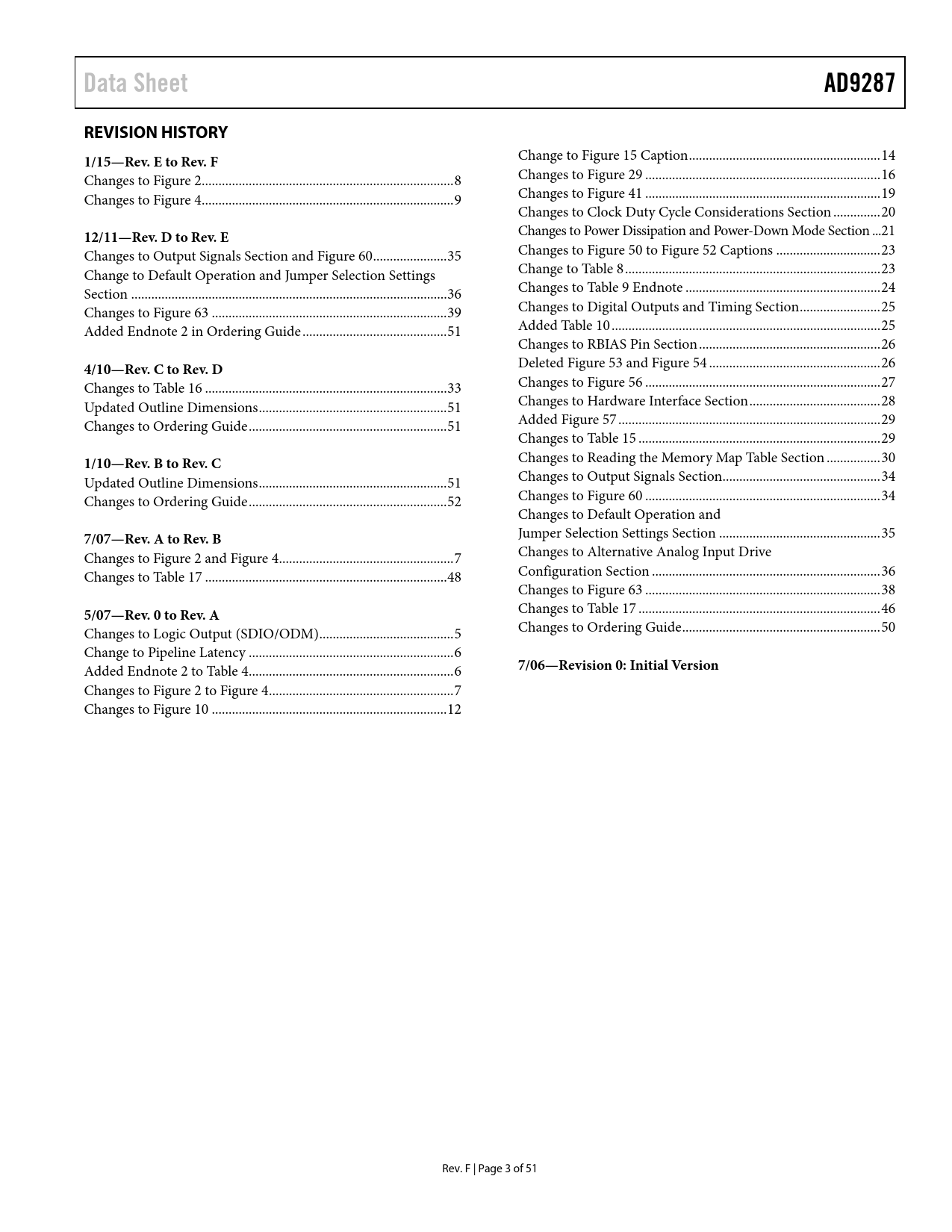 Pages / Page52 / 4 — Data Sheet. AD9287. REVISION HISTORY. 1/15—Rev. E to Rev. F. 12/11—Rev. D …